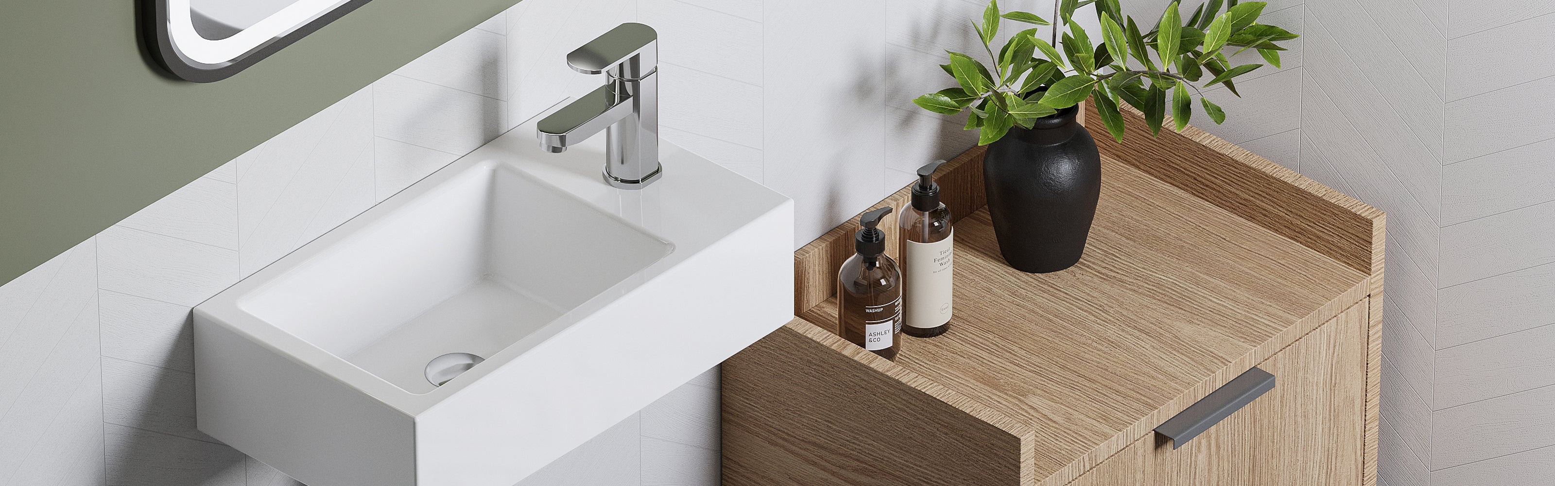 The installation height of space-saving sinks differs from pedestal or vanity sinks because it allows users to choose their preferred height which benefits adults and children and people with mobility issues.