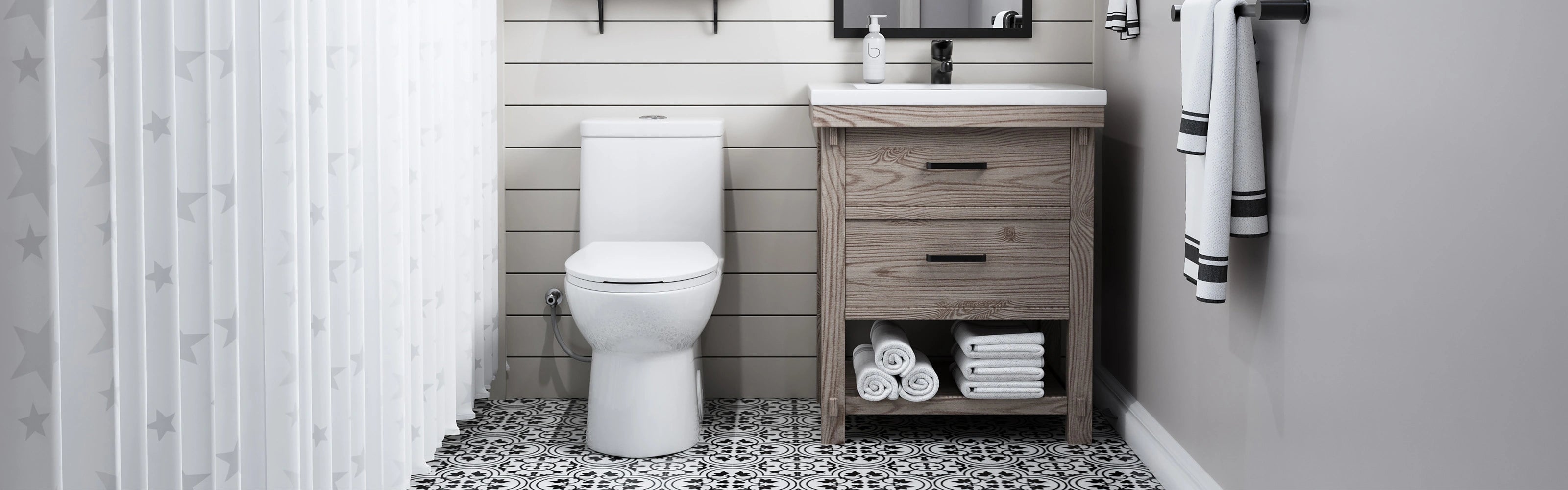 One Piece Skirted Toilet with Power Flush for 12 Inch Rough In Model T0307WOne Piece Skirted Toilet with Power Flush for 12 Inch Rough In Model T0307W