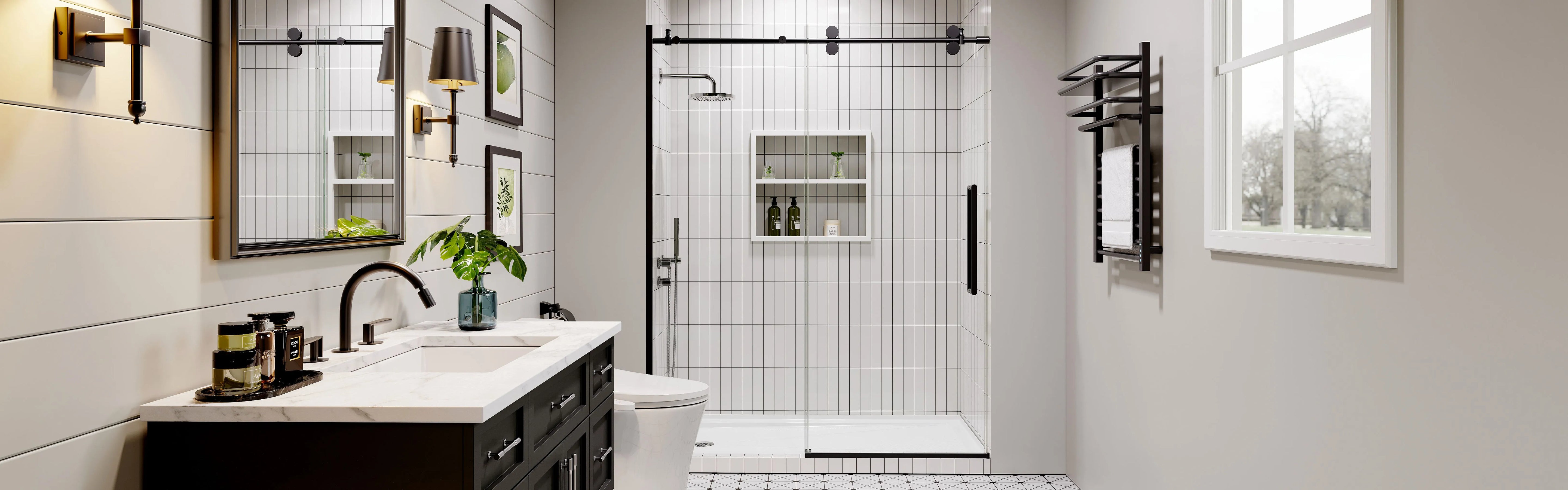 The neutral aesthetic of shower doors allows them to seamlessly integrate with any design concept ranging from industrial chic to farmhouse cozy to coastal calm to traditional elegance.