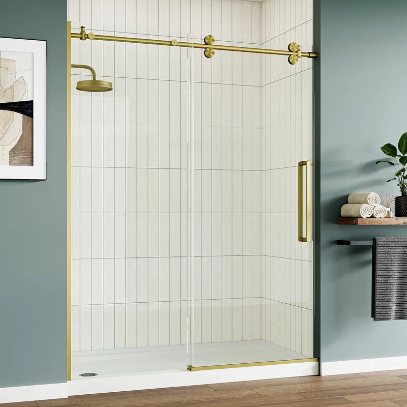 Brushed Gold Frameless Shower Door with 8mm Glass Sliding Model MI6076-SGBrushed Gold Frameless Shower Door with 8mm Glass Sliding Model MI6076-SG