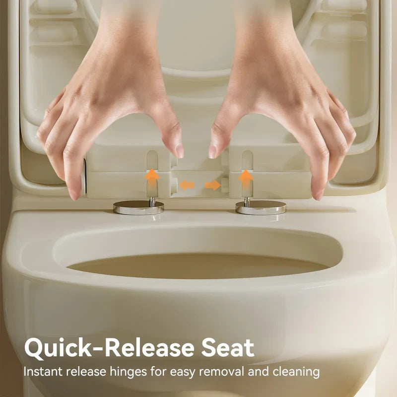 The HOROW compact toilet has a dual flush system which means it comes with a 1.28 GPF flush button. This system has two options for flush-the first is the standard flush for solid waste which provides 1.6 GPF, and the second is the quick flush for liquids which provides 1.1 GPF. This dual flush function not only help to conserve water but also maintain the bowl’s cleaning effectiveness even when using the right amount of water to flush.
