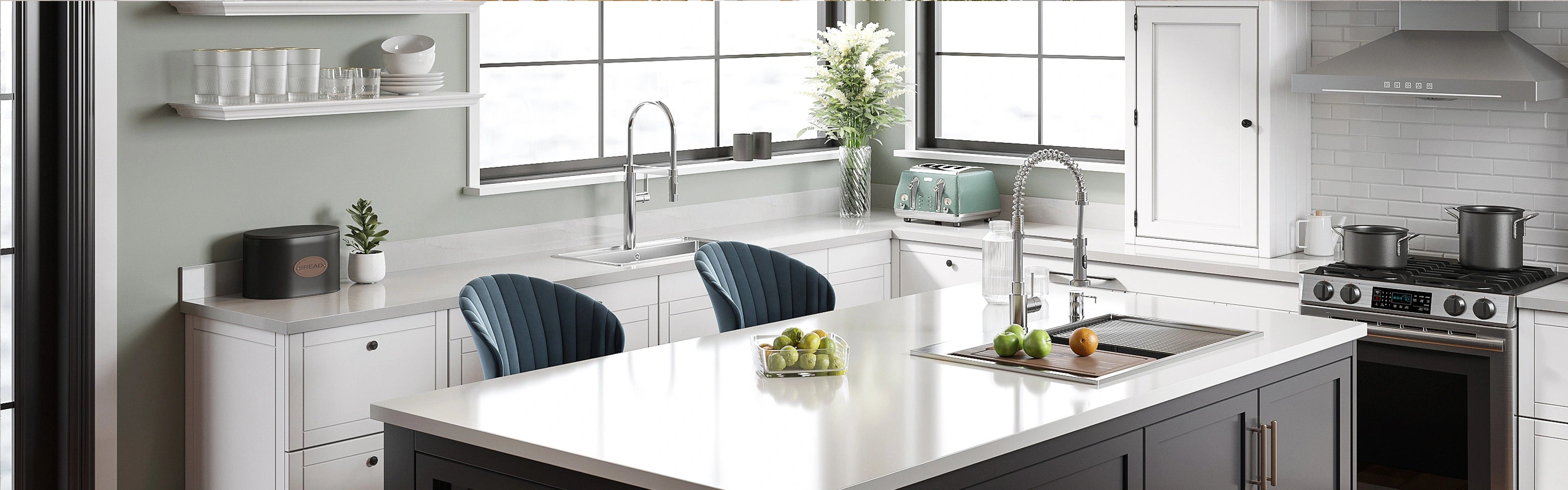 Top-mount sinks, are installed on top of the countertop, with the edges resting on the surface, making installation quick and easy. With their visible edges, top-mount sinks offer a traditional look and provide a seamless transition between the sink and countertop, perfect for various kitchen styles