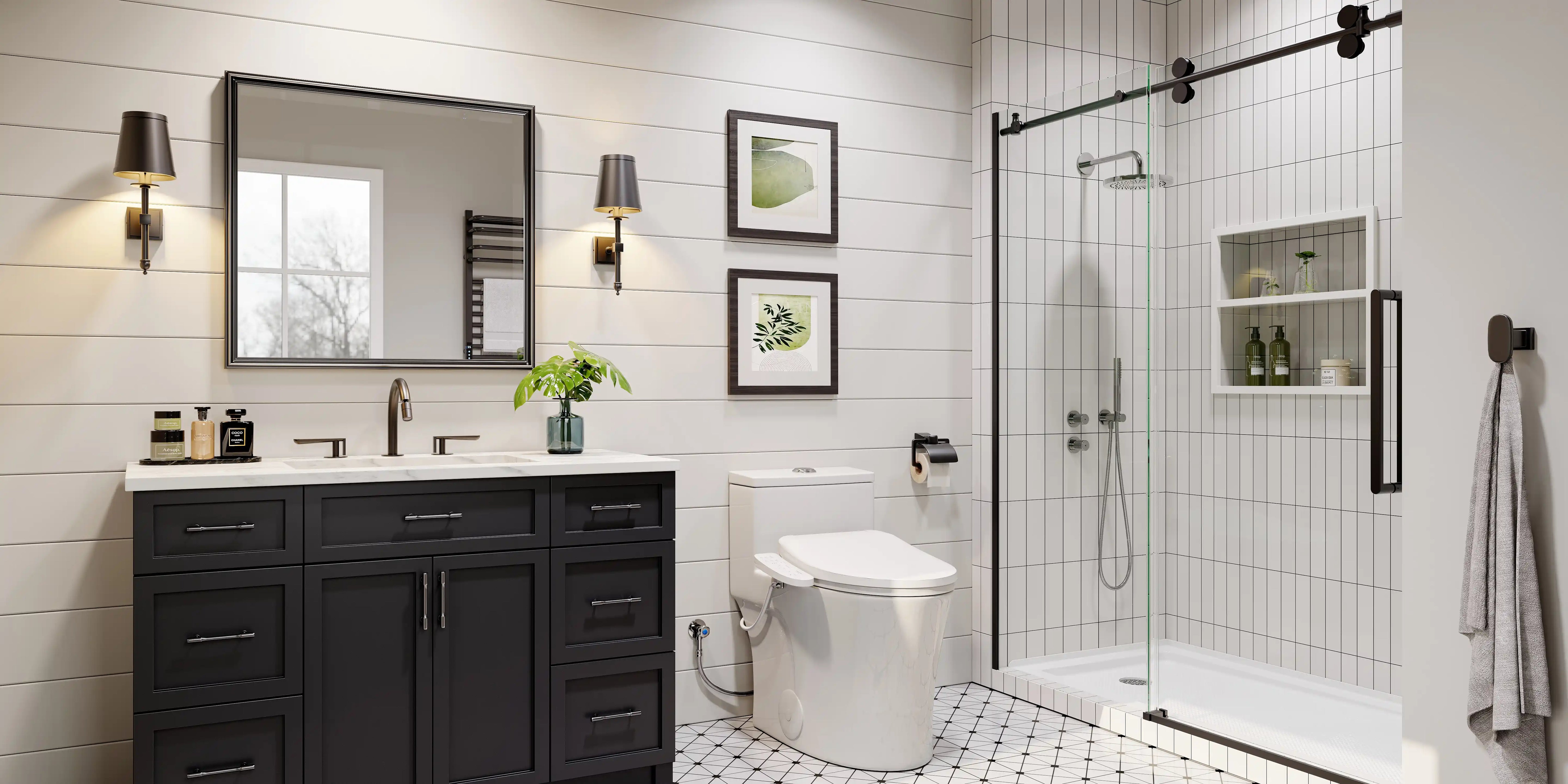 HOROW K2-MB Black Ultra-Narrow Frame Shower Door with Magnetic Catch