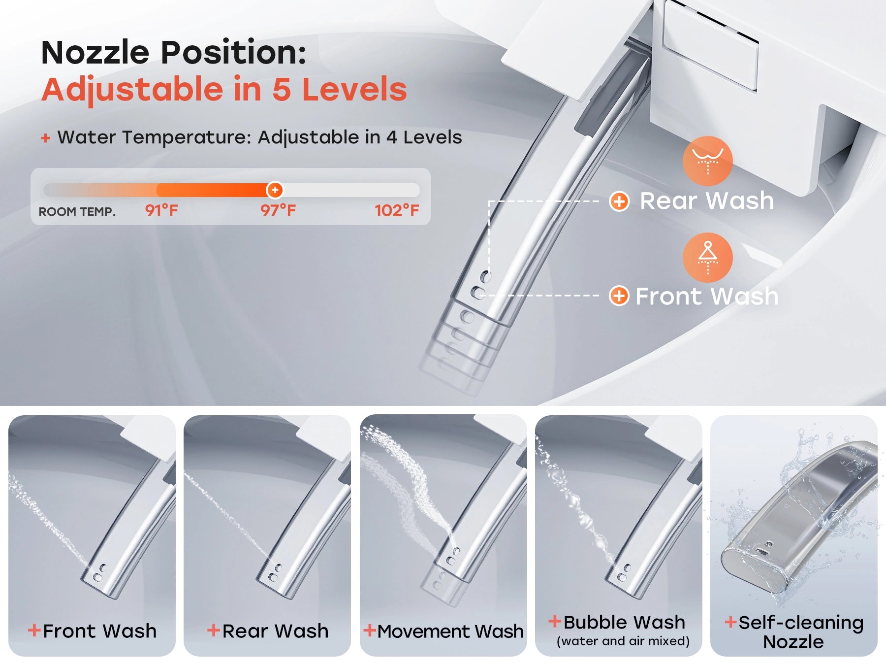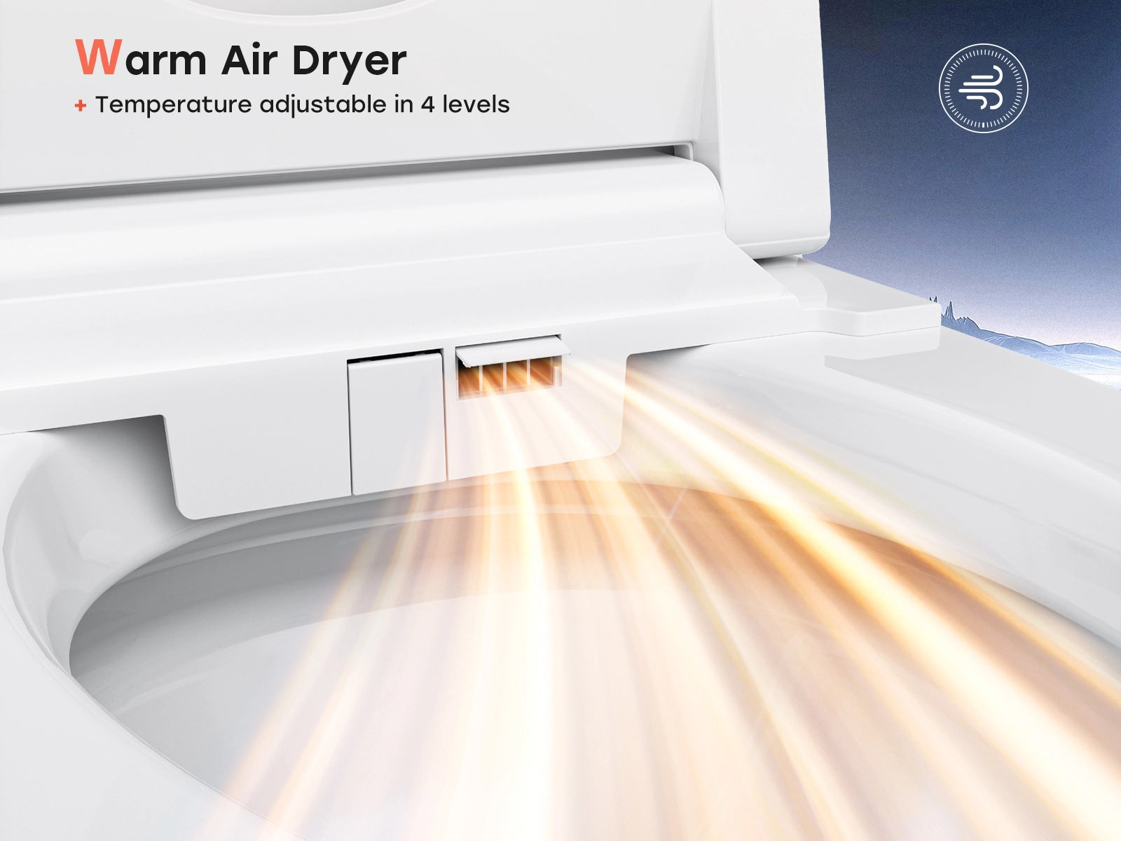 - Adjustable 4 settings for heated seat, dryer, and water temperature