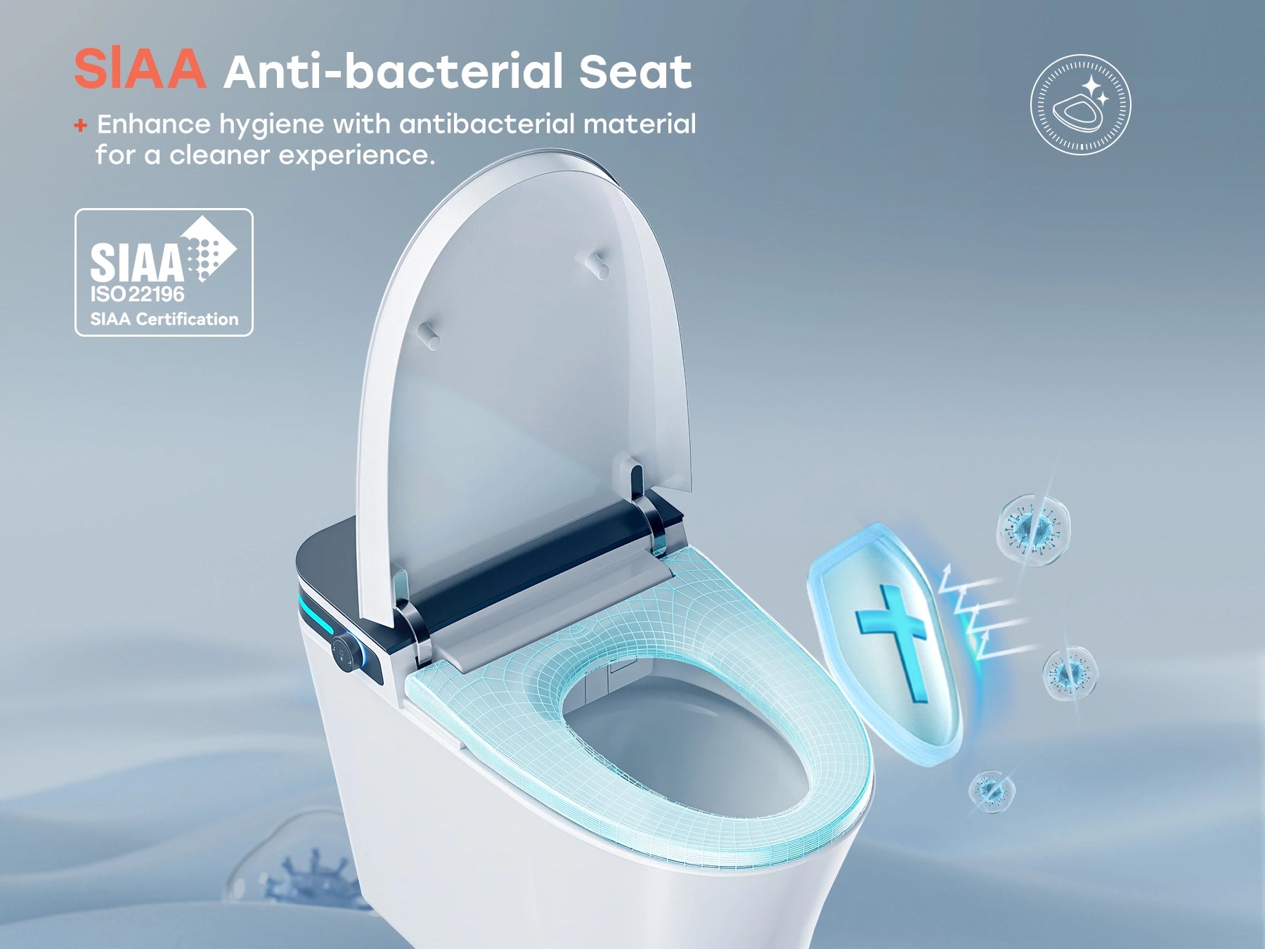 Flush the smart way—automatically when you stand up, or with a simple wave of your foot. No contact, just convenience.