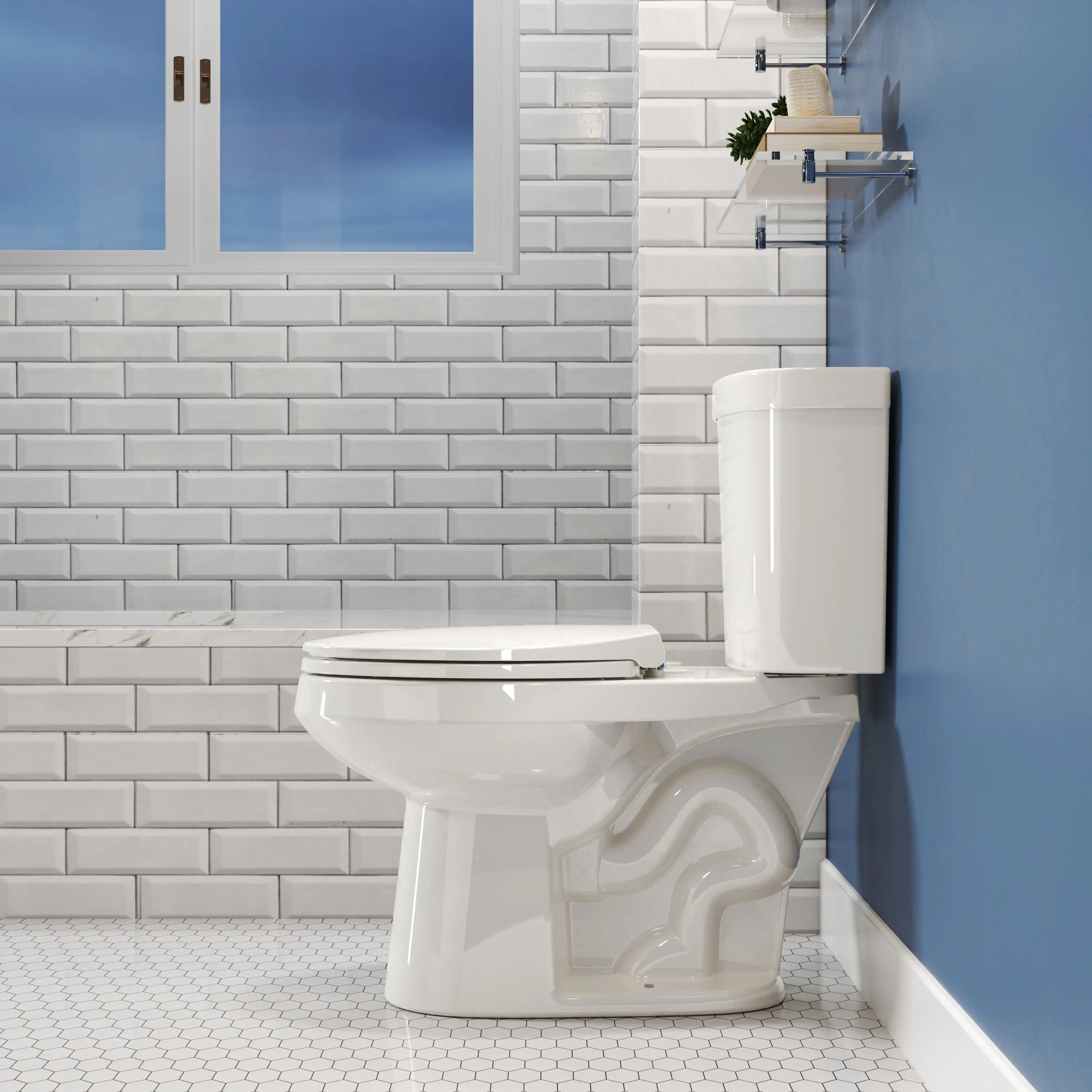 HWTT-E01D is an ADA toilet height 17.5 inch. The two piece toilet with 1.6GPF dual flush can flush most solids and liquids, the 2-inch all-glass drainage channel improves drainage capacity, and the extended bowl and comfortable seat height allow most people to have a comfortable sitting posture.