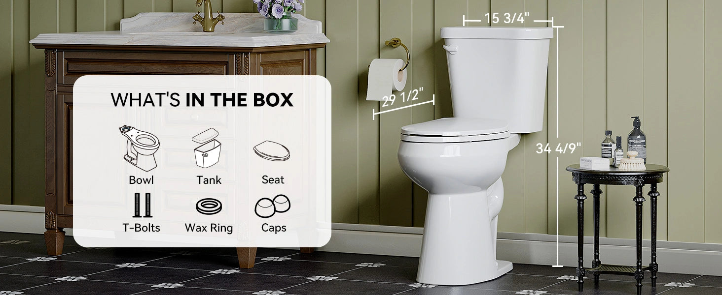 The HOROW E02S elongated two-piece toilet offers a perfect blend of comfort and functionality. With a 19-inch ADA-compliant height, it ensures easy accessibility for all users, promoting convenience and safety. Its powerful jet siphon flush system delivers an efficient and quiet single-flush performance, conserving water while maintaining exceptional cleaning power. Designed for a 12-inch rough-in, it fits seamlessly into standard bathroom configurations. The elongated bowl enhances comfort, while its sleek, modern design complements any decor. Crafted with durable materials, the E02S is easy to clean and built to last, making it an excellent choice for homes, offices, or public spaces.