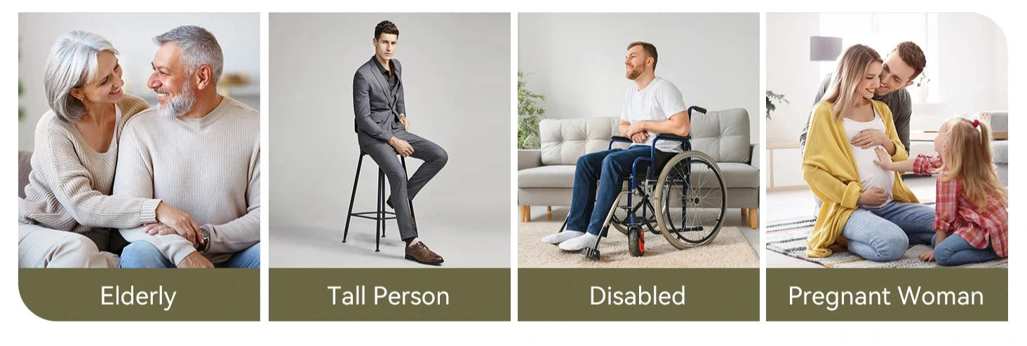 The high toilet features a seat height of 19 inches from the floor, offering a chair-height design with an elongated bowl. This ergonomic design eases pressure on the knees and joints, providing effortless sitting and standing. It’s an ideal choice for seniors, pregnant women, individuals with mobility challenges, and taller users, ensuring comfort and accessibility for everyone.