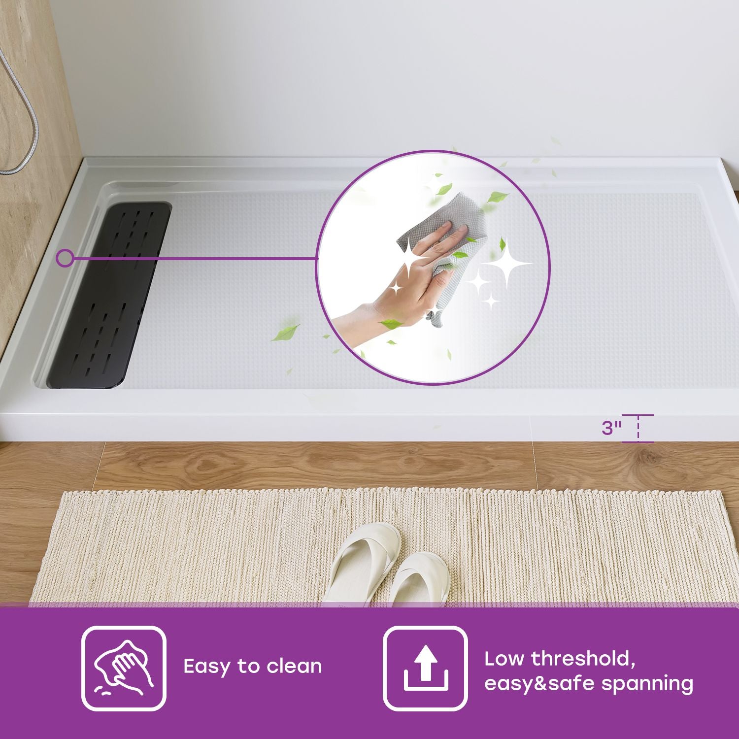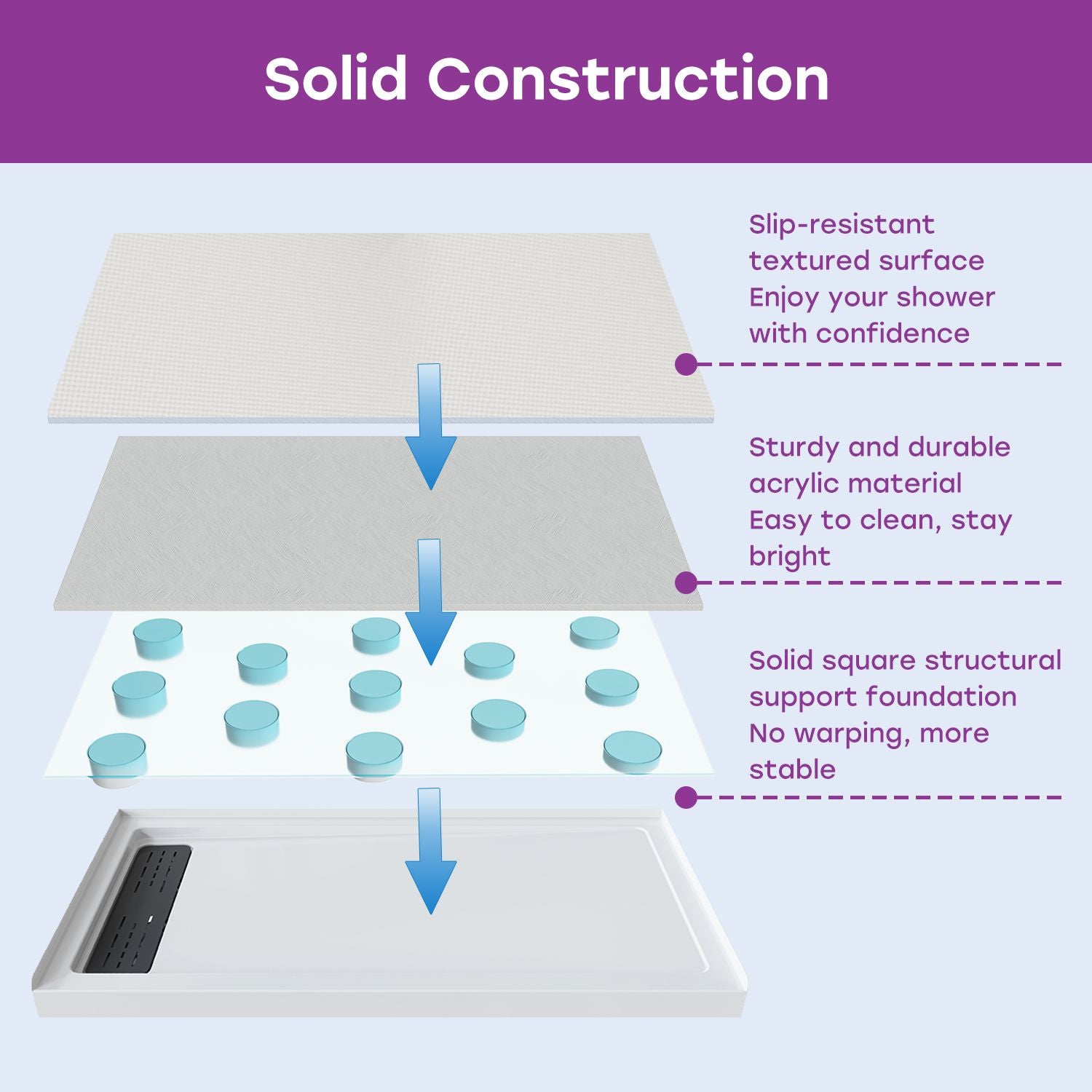 Crafted from premium acrylic material, this shower base is built to last, resisting wear and tear from daily use.