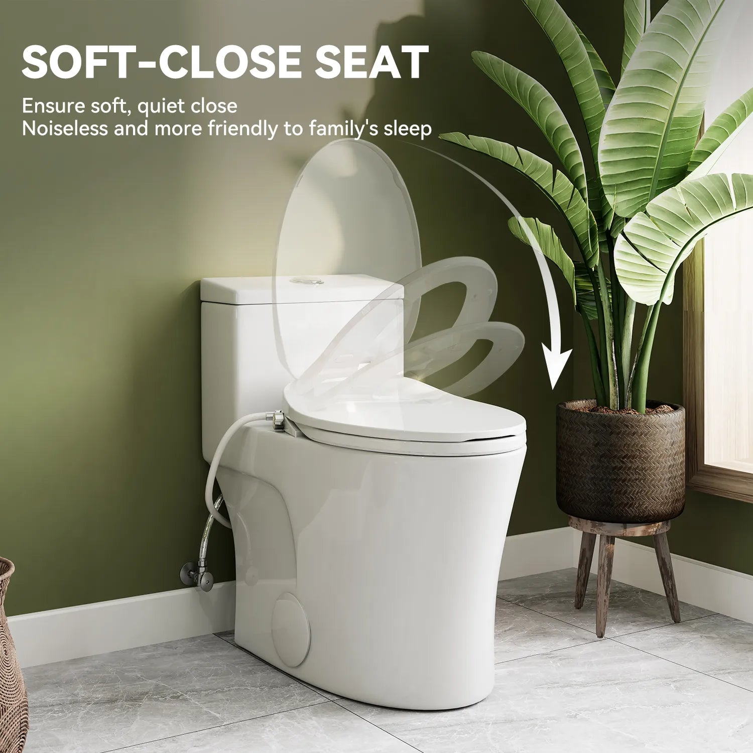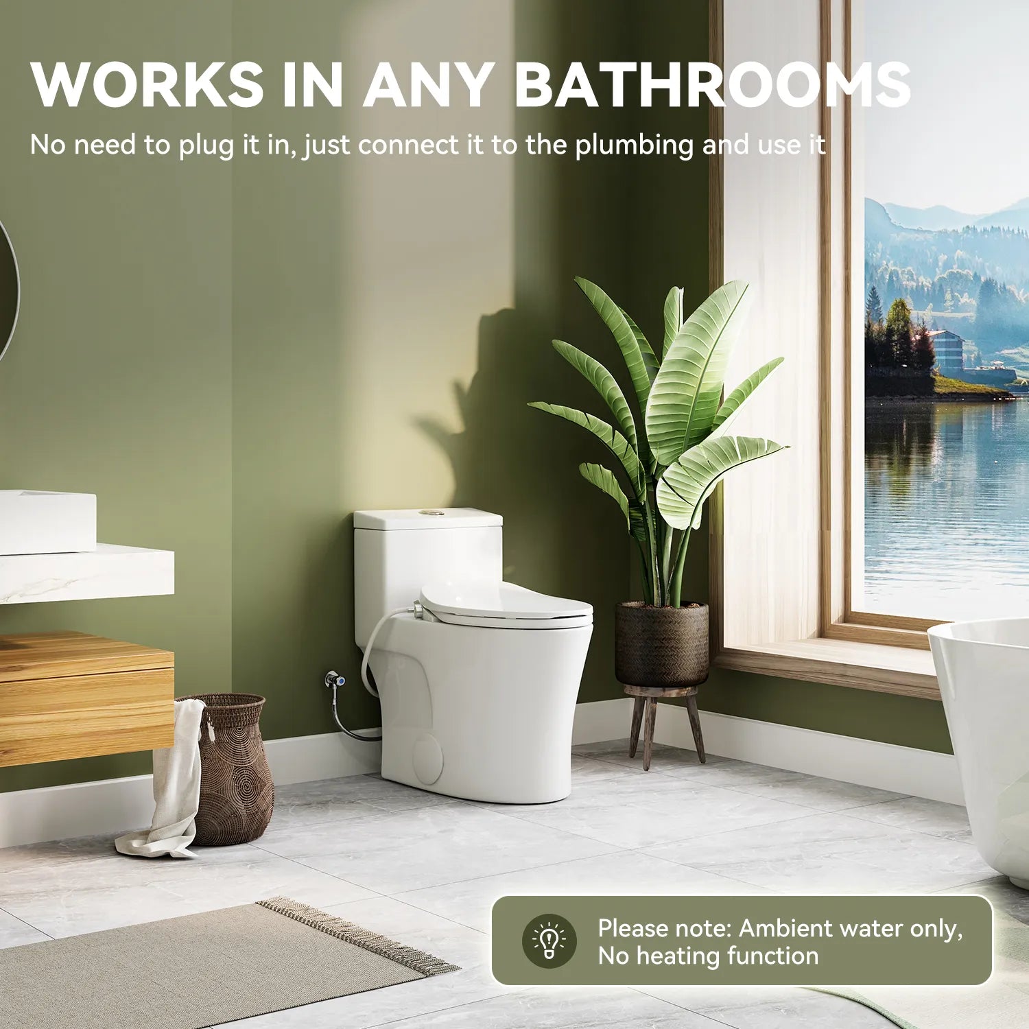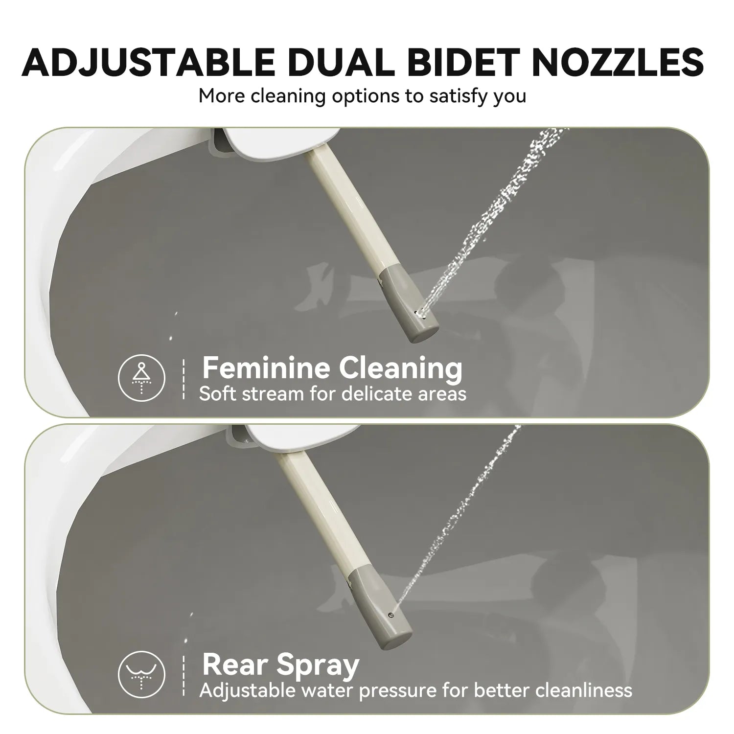The dual bidet nozzles and soft close non-electric bidet toilet seat is a perfect blend of modern convenience and hygienic functionality for any bathroom. This innovative toilet seat features dual bidet nozzles, offering a personalized and thorough cleaning experience. The dual nozzle system includes one nozzle for posterior wash and another specifically designed for feminine wash, ensuring that users of all genders can enjoy a comfortable and sanitary clean.