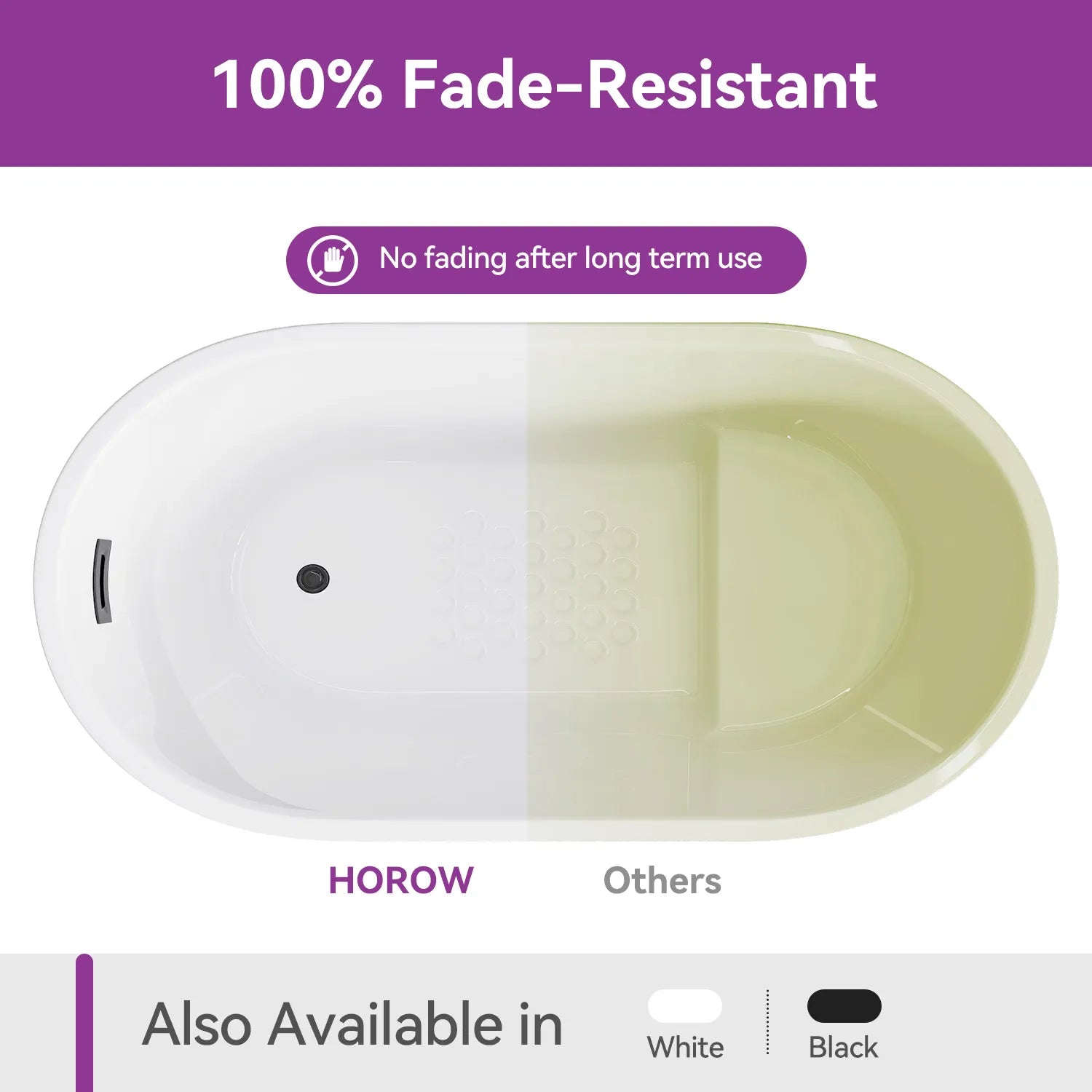 Designed to maintain its original color and elegance, this bathtub resists fading even after extended use, ensuring a timeless look for your bathroom.