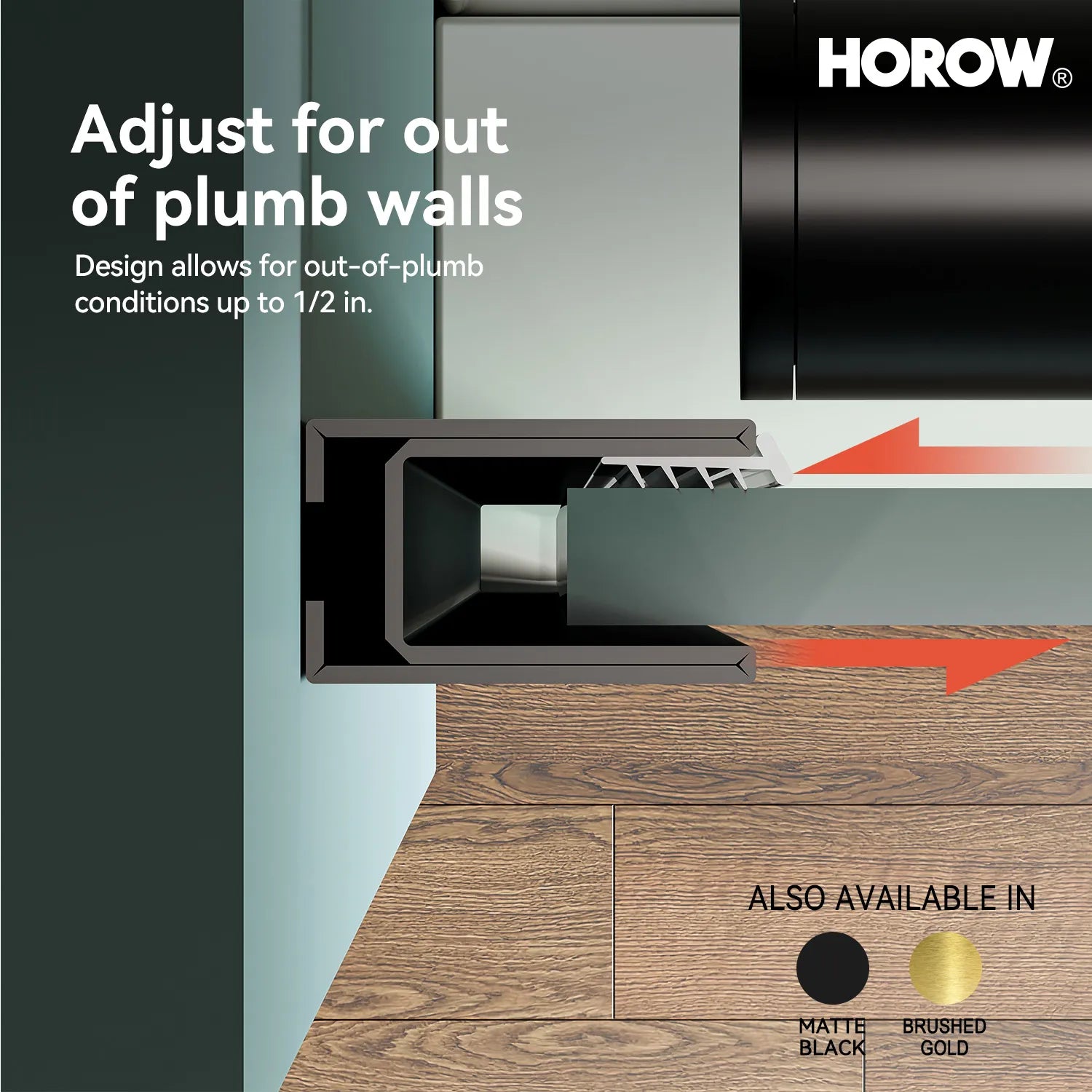 This shower door design allows for easy adjustment in out-of-plumb conditions, accommodating up to 1/2 inch to ensure a perfect fit, even with uneven or irregular walls.