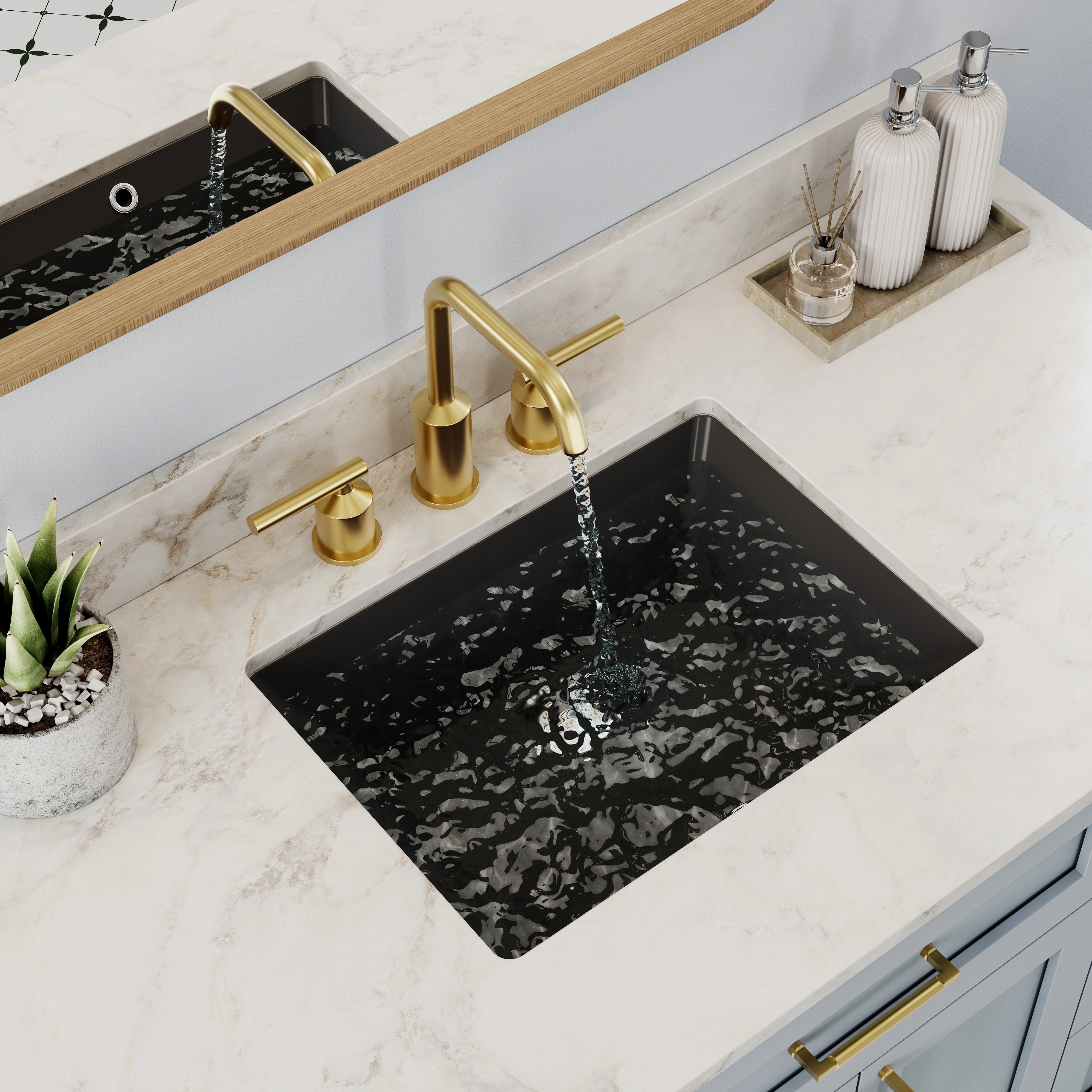Enhance your bathroom with the HOROW black undermount rectangle sink, featuring a sleek design, built-in overflow, and splash-proof performance. Durable, modern, and easy to clean—perfect for stylish, functional bathroom upgrades.