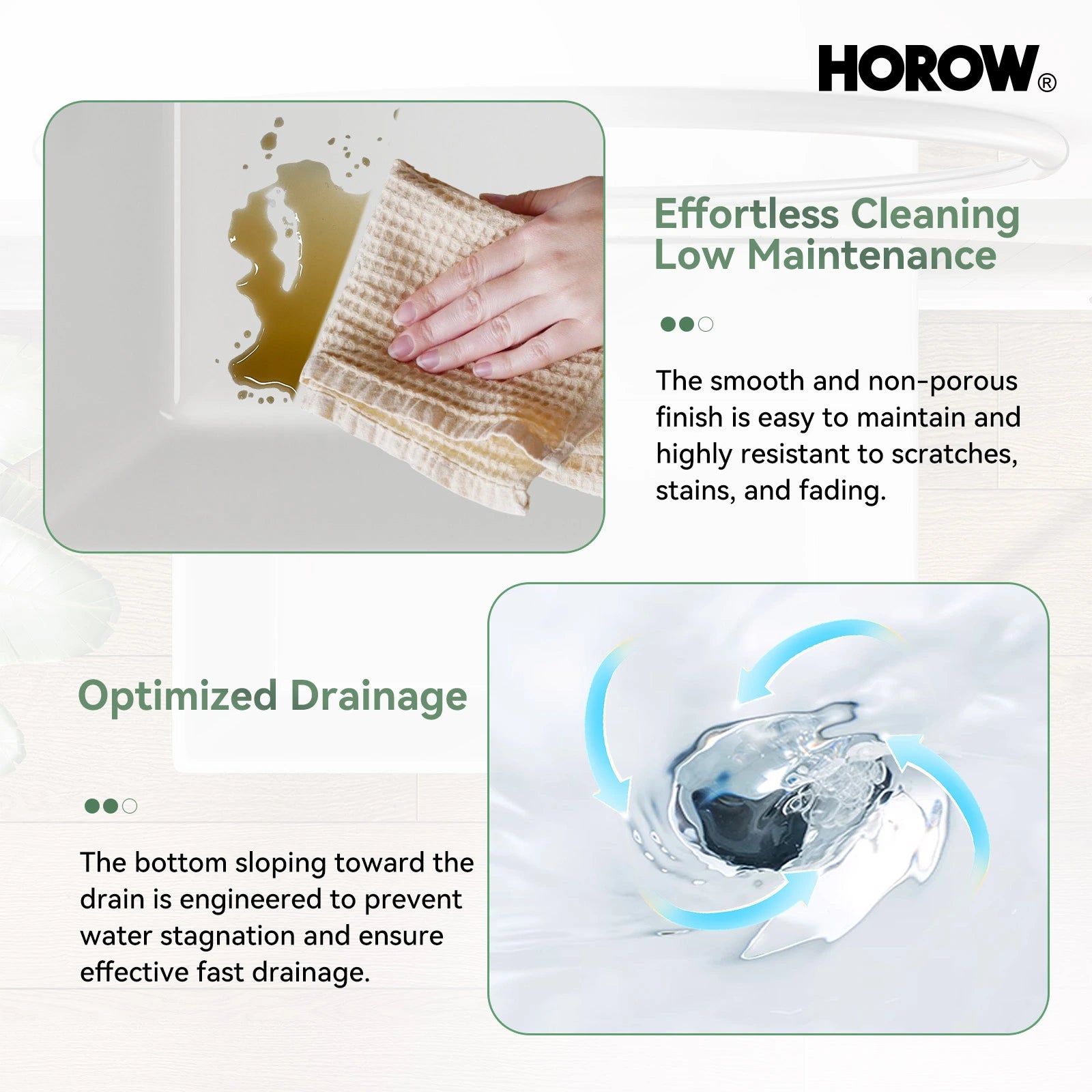 This sink is made from non-yellowing material, keeping its bright, clean look over time. It resists discoloration from daily use, maintaining its original color and shine, even with regular exposure to water and cleaning products.