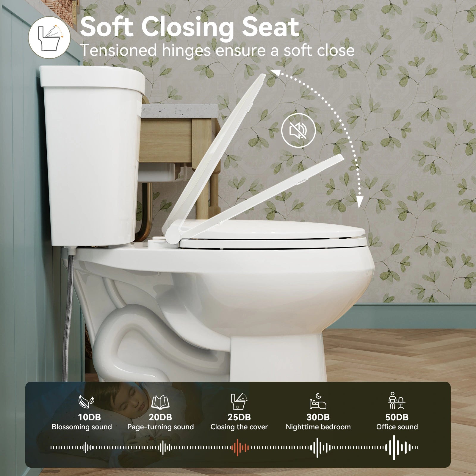 The soft-close seat ensures a quiet and gentle closing, preventing noise and accidental slams for a more peaceful bathroom experience.