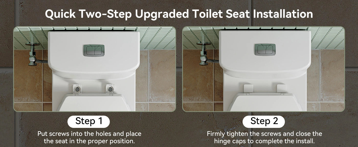 This comfortable height toilet features a soft-closing PP seat for quiet nighttime use. The elongated seat is securely fixed with screws to prevent loosening.