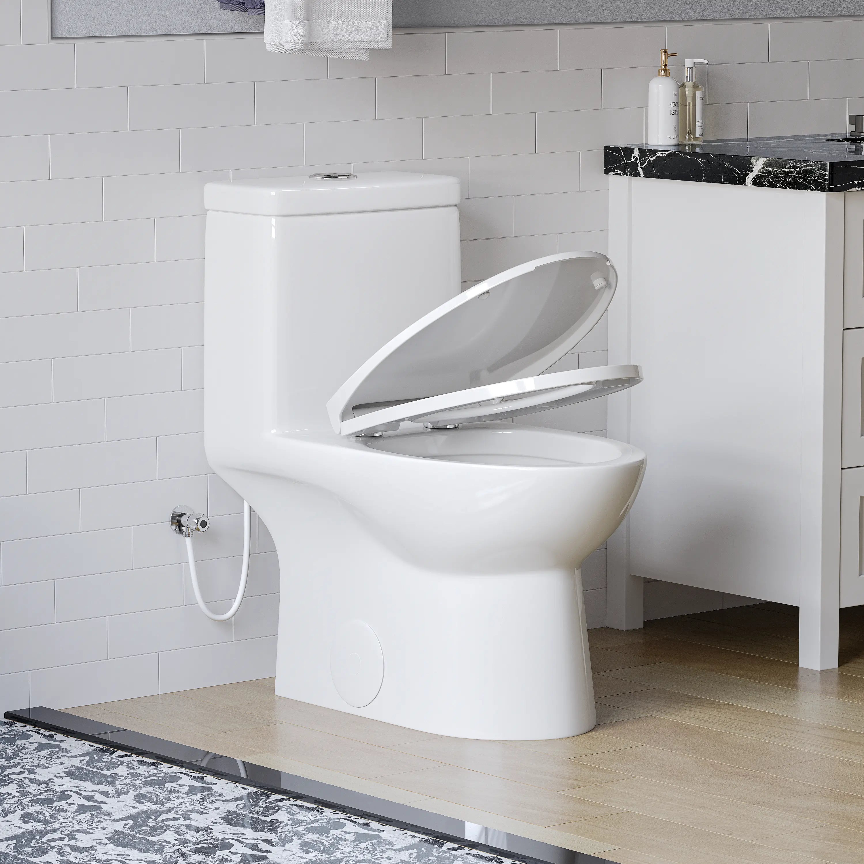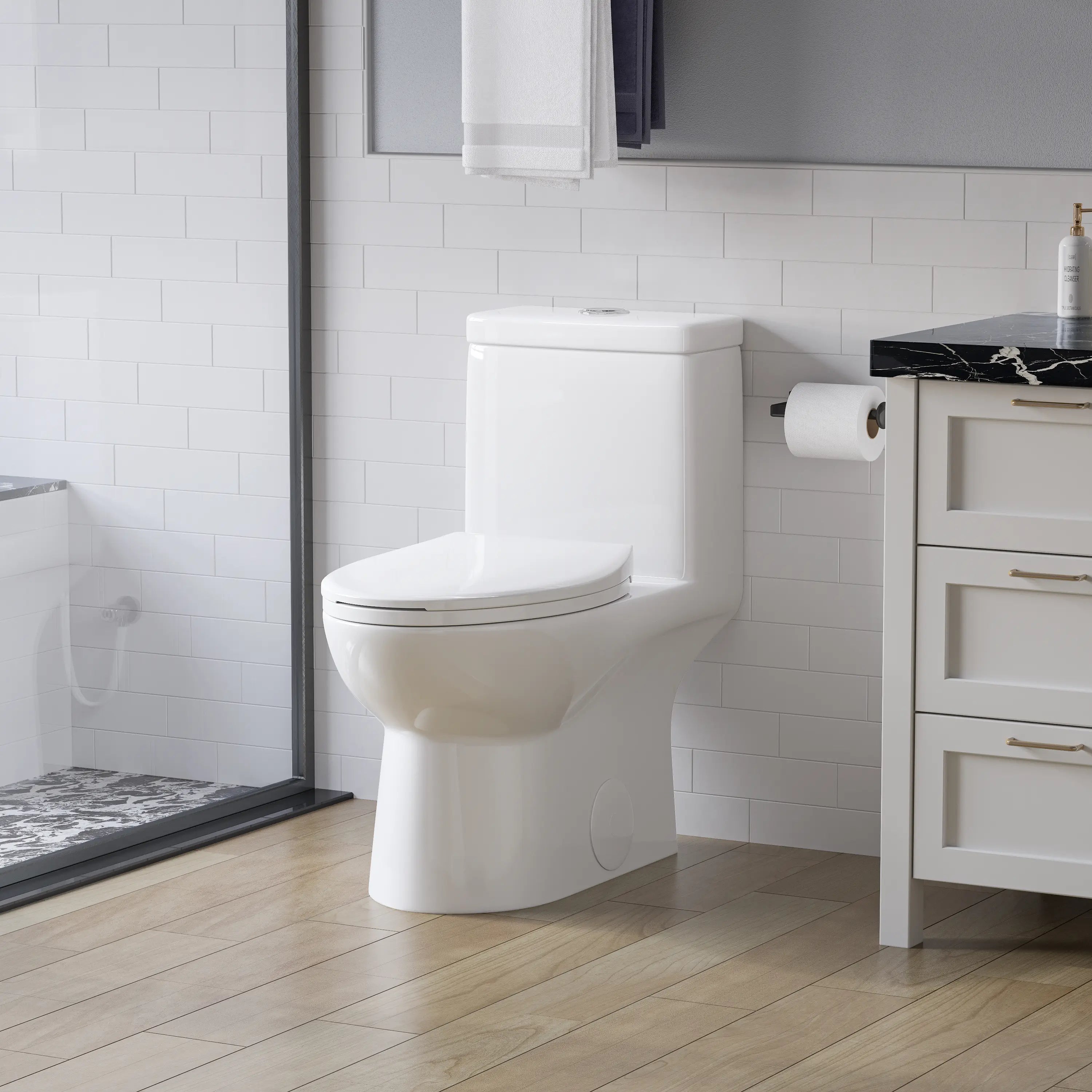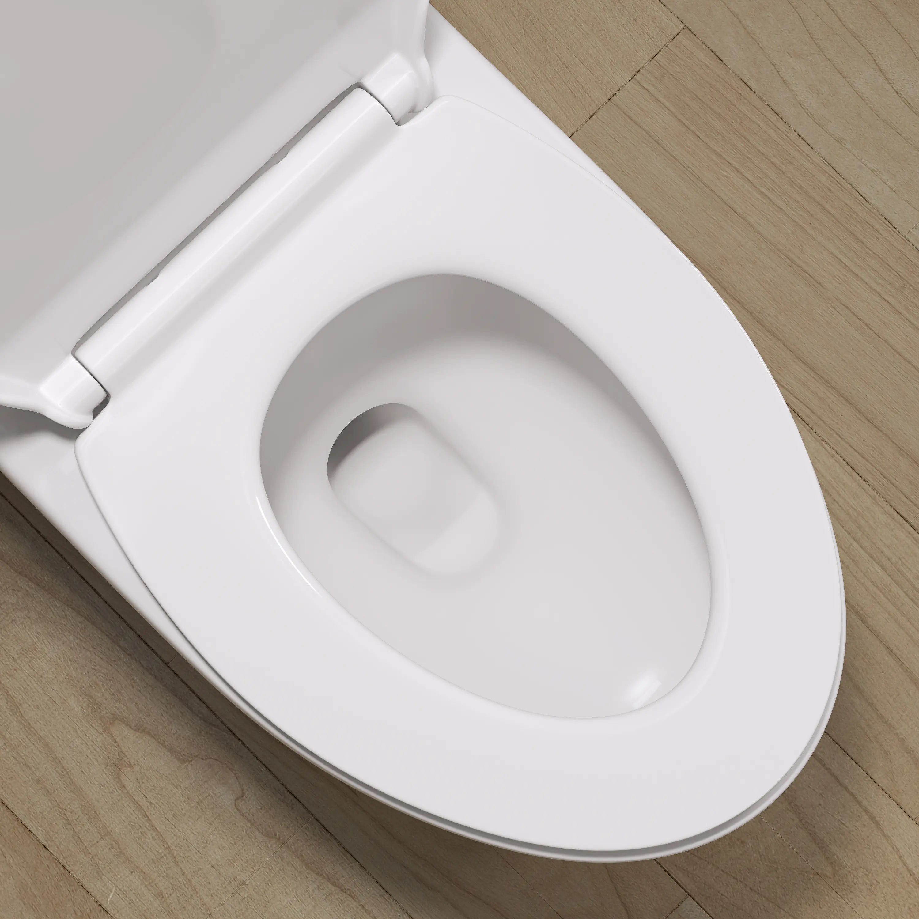 The dual-flush siphon system offers versatility, with a full flush using 1.6 gallons and a light flush using 1.1 gallons. This ensures powerful cleaning while being highly efficient in water usage.