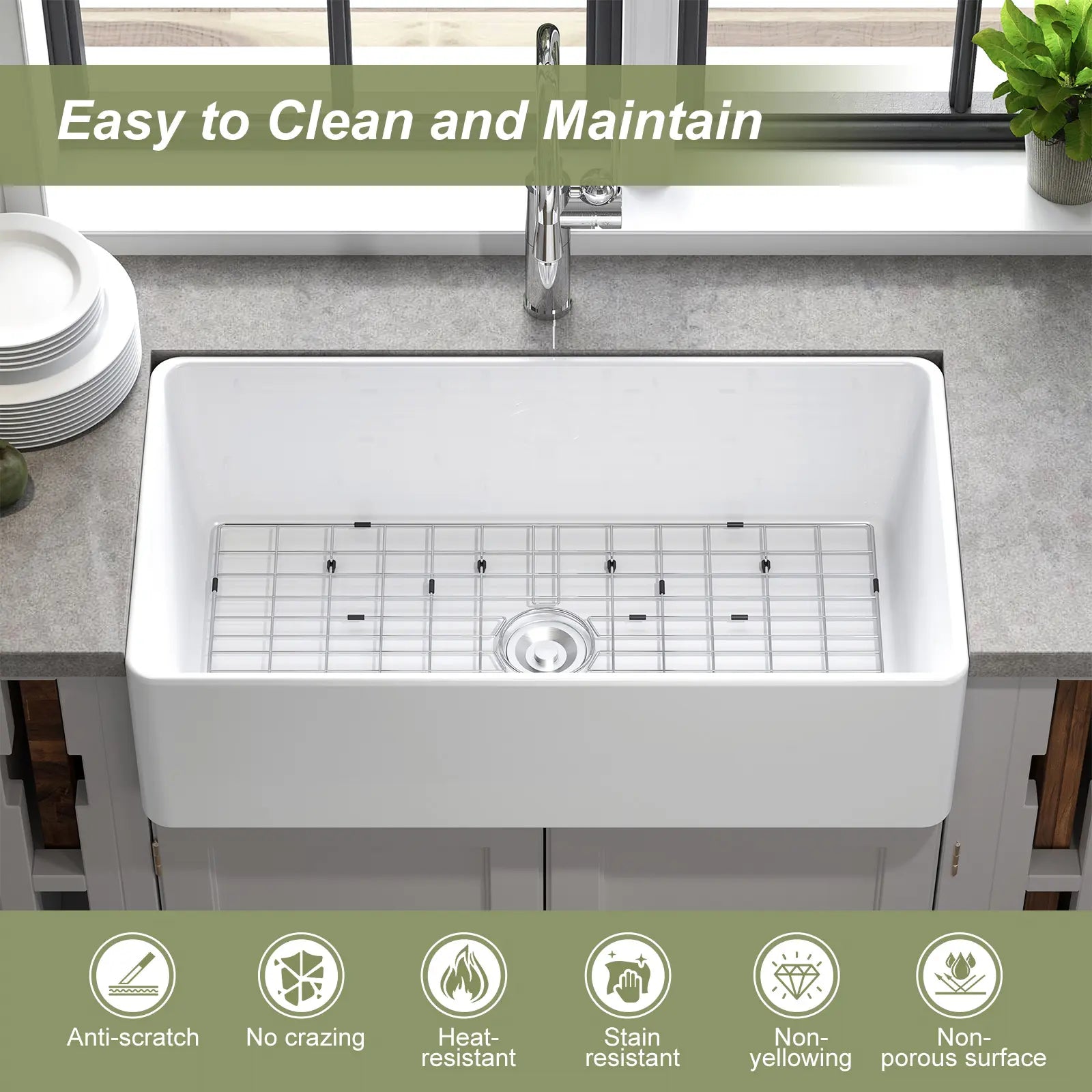 The unique material of our white farmhouse sink simplifies cleaning and care. Fireclay farm sinks are exceptionally easy to maintain, offering numerous advantages over sinks made from other materials.