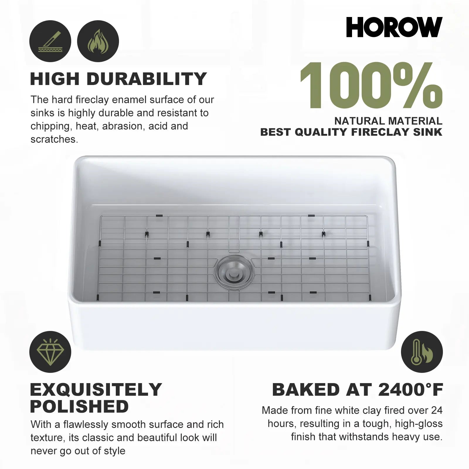 HOROW 36 Farmhouse Apron Sink Undermount Fireclay Kitchen Sink Model HR-S3618W