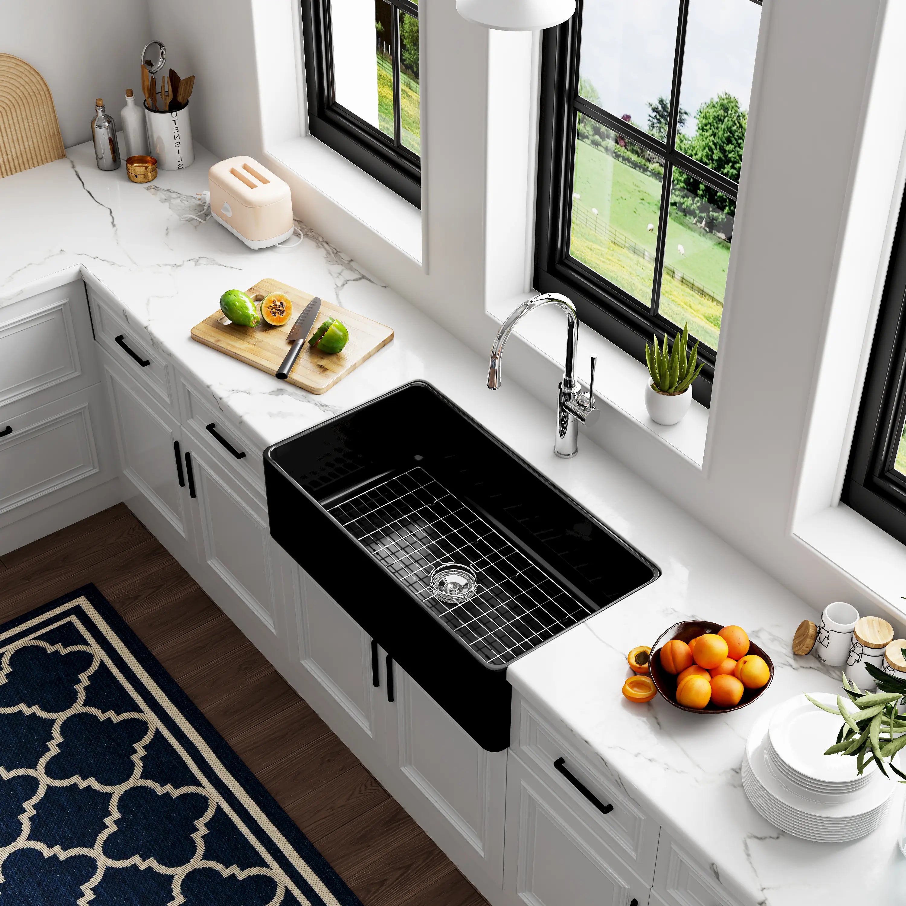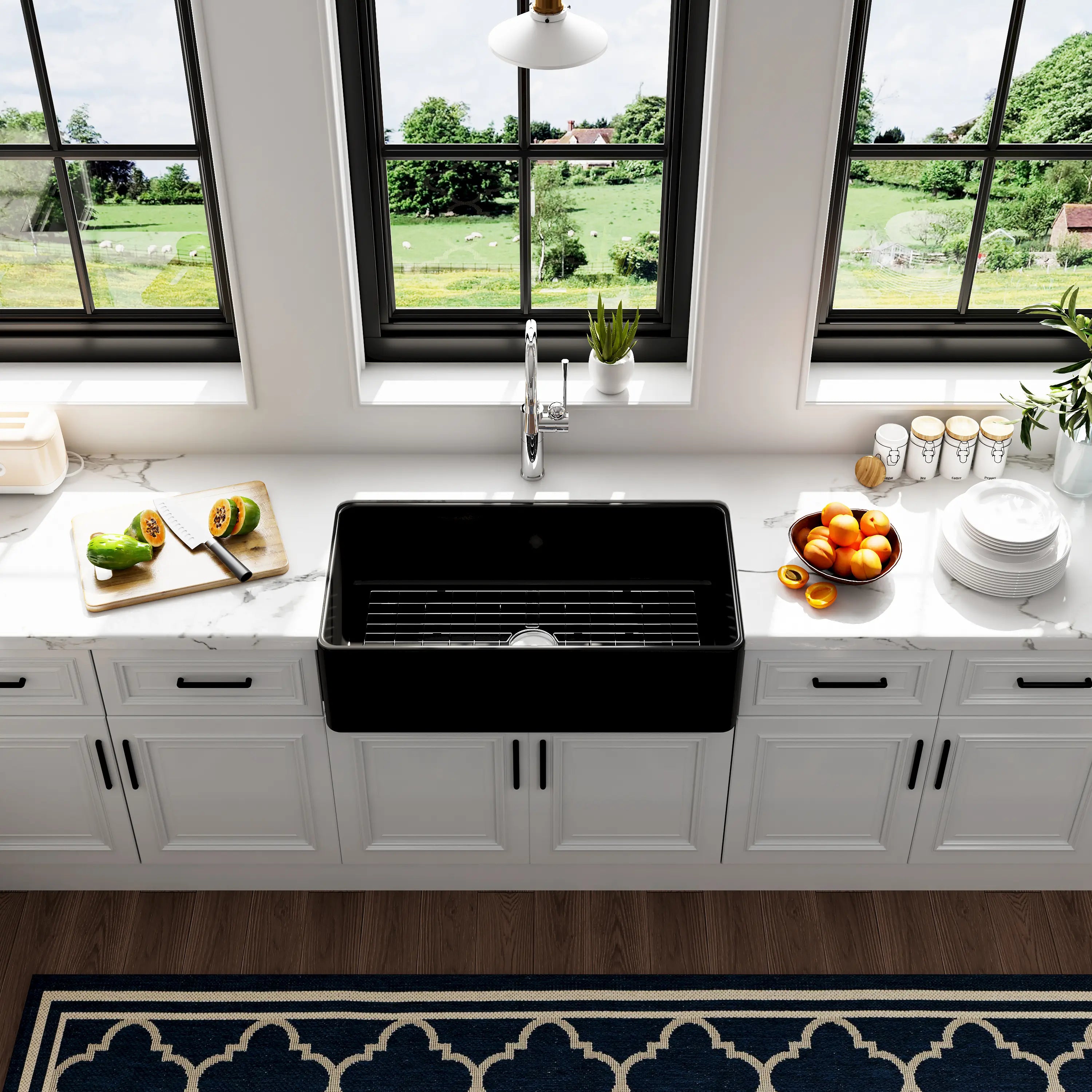 HOROW 36 Inch Sink Black Kitchen Farm Sink With Basket Strainer Model HR-S3618B