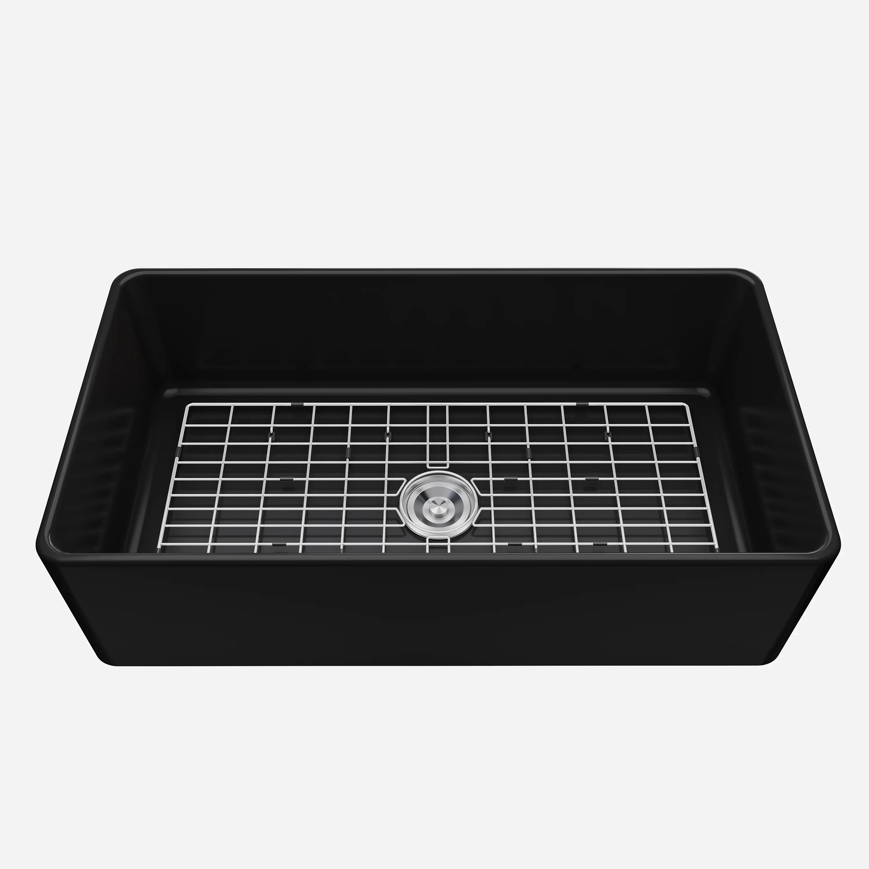 Protect your sink with handmade, heavy-gauge steel grids, coated for enhanced durability and lasting color. Basket strainer drains, especially designed for HOROW fireclay farmhouse sinks, are available for a seamless fit.