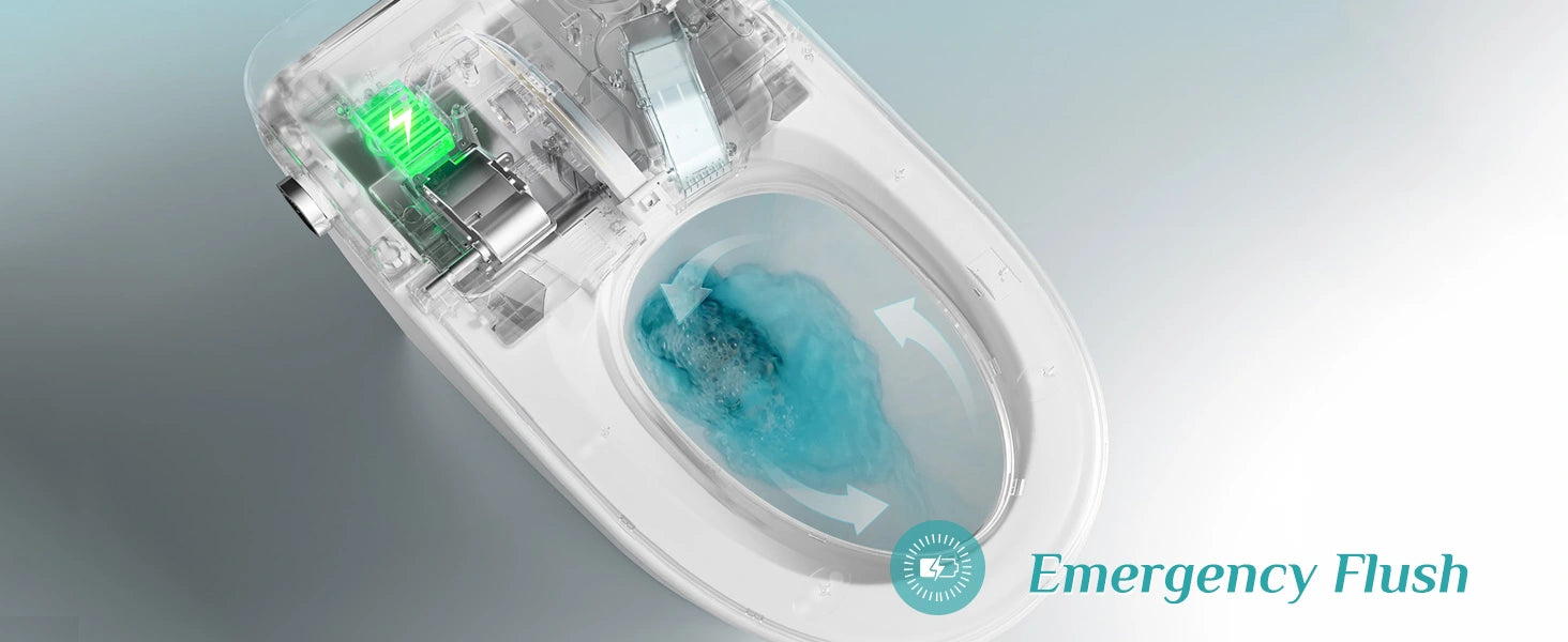 The HOROW T05 bidet toilet combo offers advanced hygiene with integrated bidet features, power outage flush capability, and a sleek design. Perfectly fits 12-inch rough-in spaces, combining comfort, efficiency, and modern convenience in one smart bathroom solution. The power outage flush function operates with a battery pack that needs to be purchased separately.