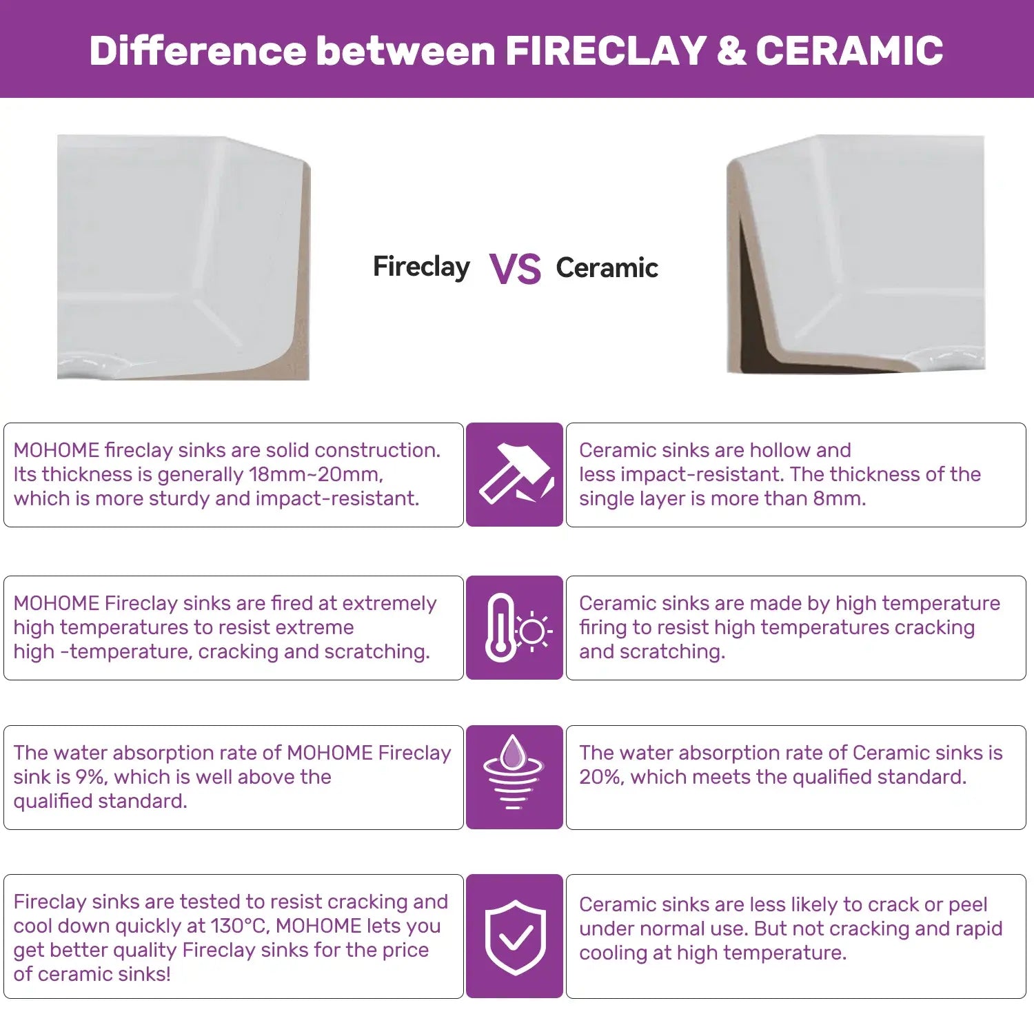 Handcrafted from 100% natural organic fireclay, our sinks feature a proprietary fine blend kiln-fired at high temperatures of 2300°F.