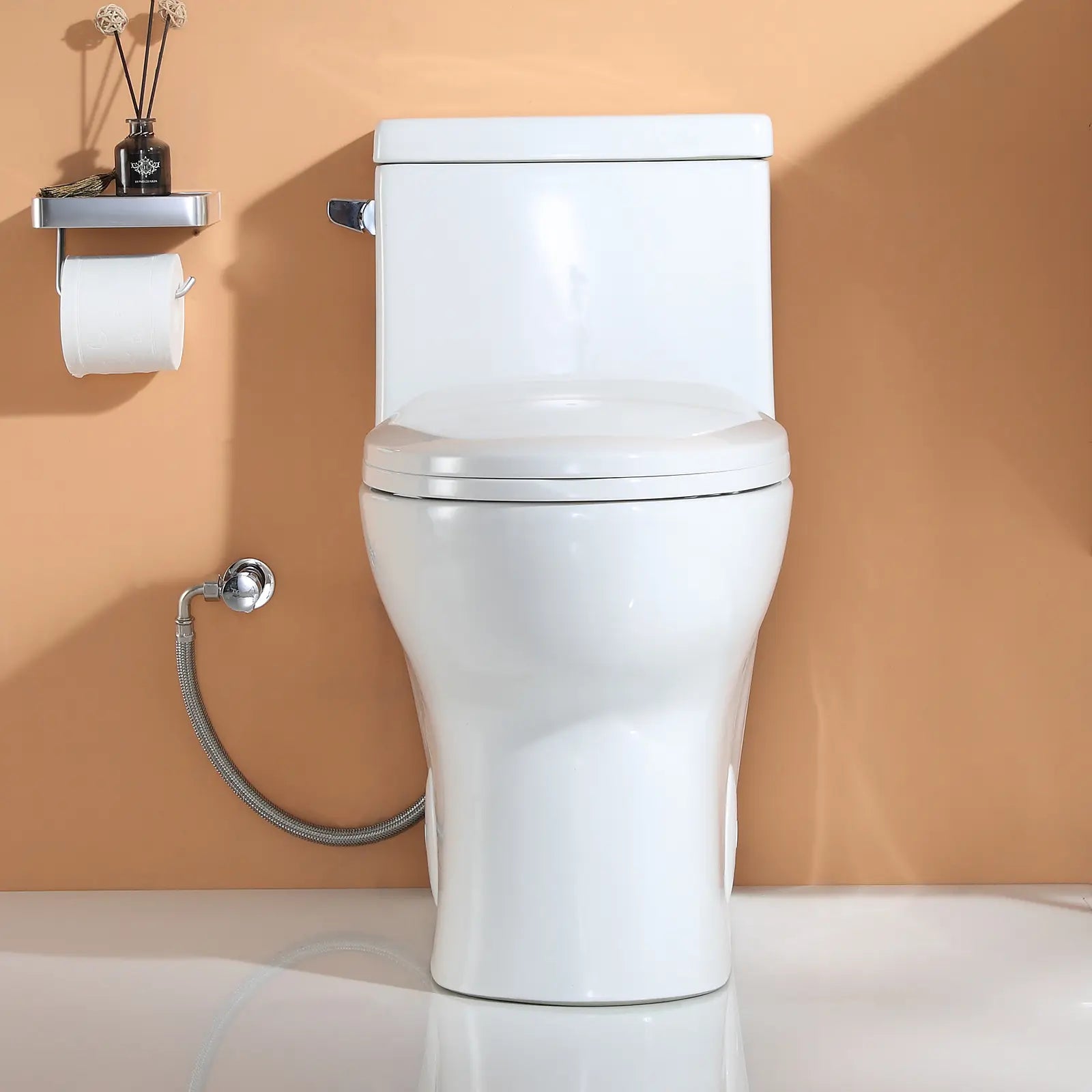 The HOROW ST076W One-Piece Toilet features a powerful single flush, a fully skirted trapway for easy cleaning, and a soft-closing seat for quiet, modern comfort.