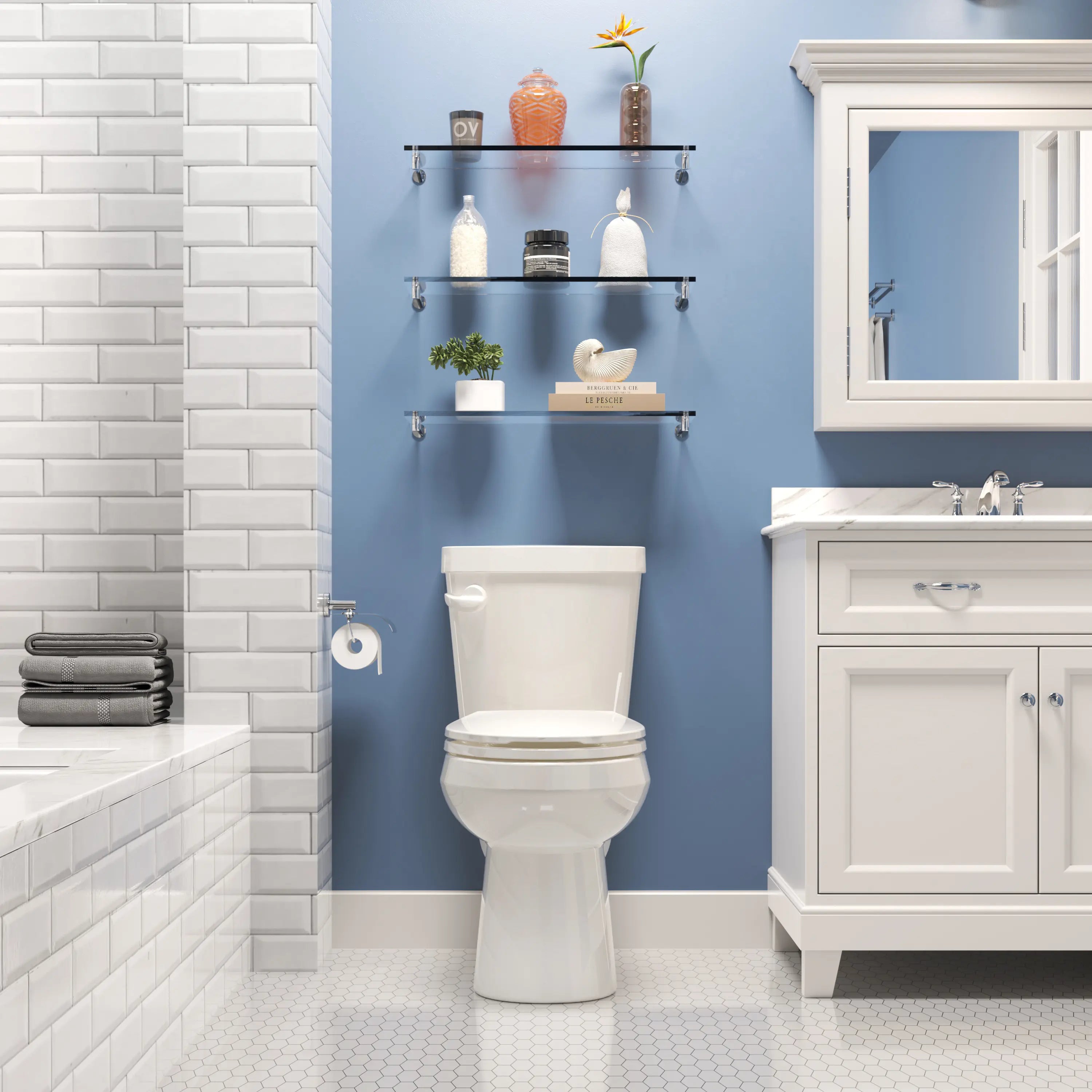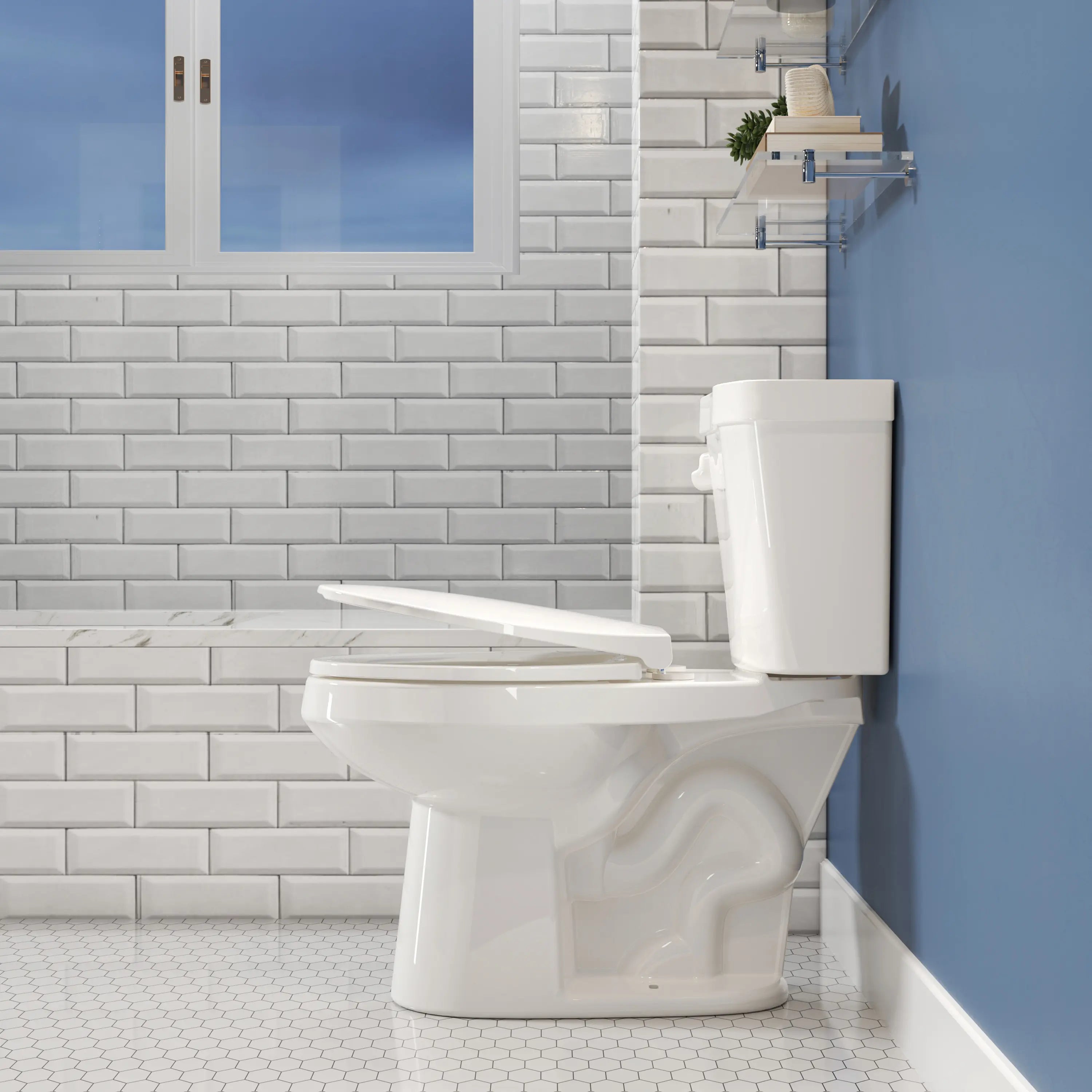 - 2-piece design features a separate tank and bowl, an elongated bowl offers added room and comfort