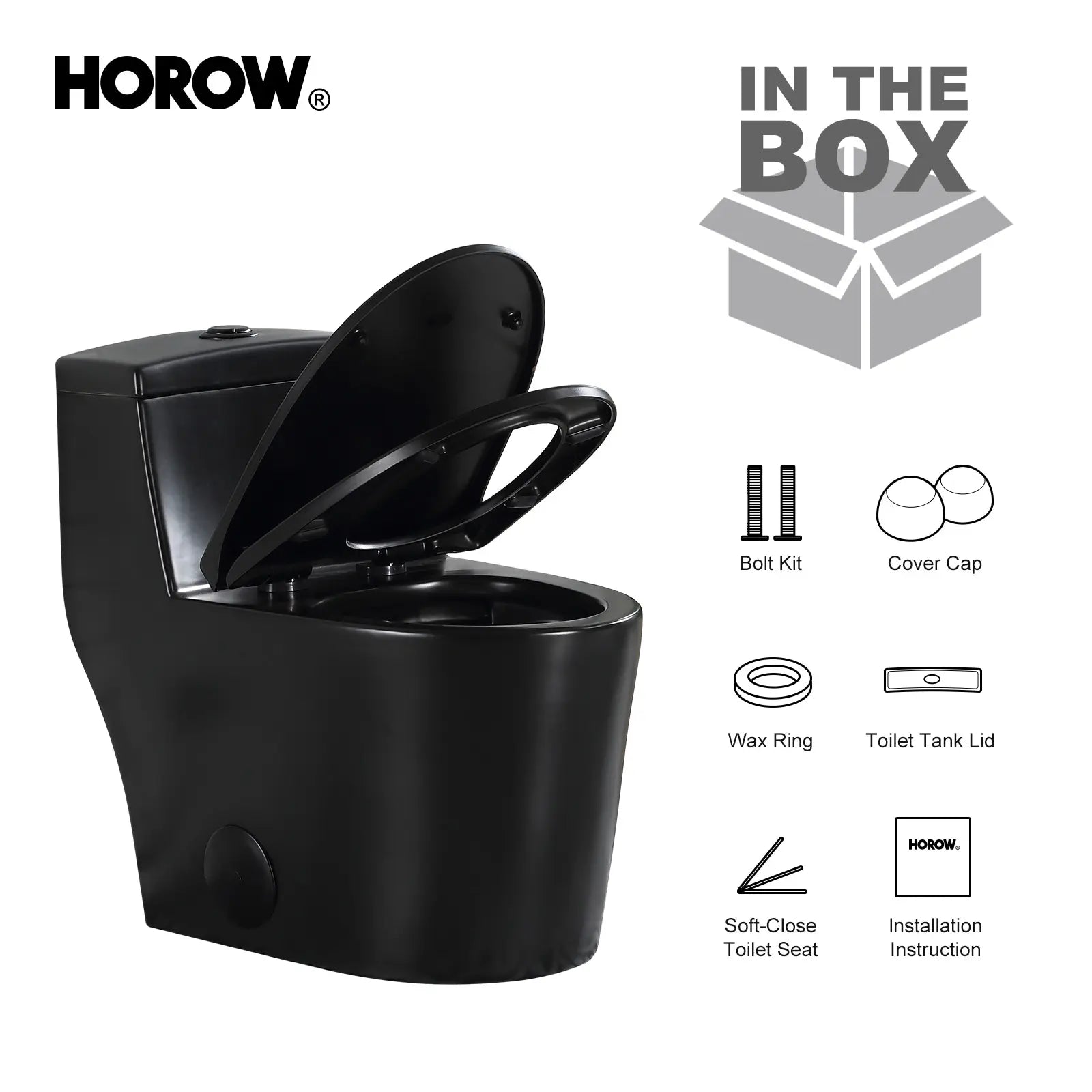 HOROW Dual Flush 1.28 GPF Elongated Toilet HOROW One Piece Toilet With Seat Model HR-T0280B