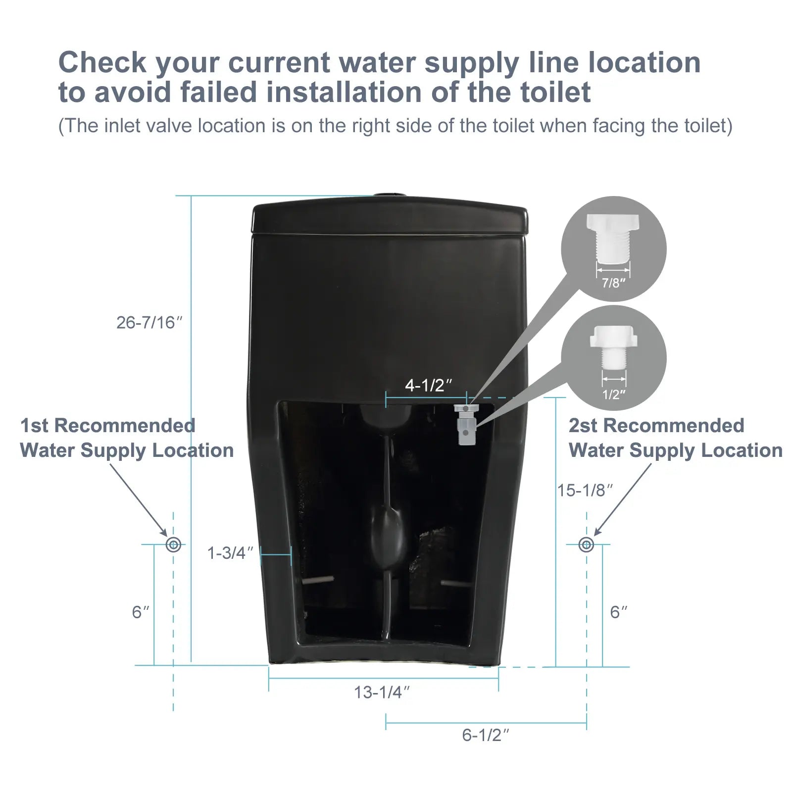 The HOROW HR-T0280B toilet is a black one piece toilet. The 12 inch rough in and 16.87 inch seat height are suitable for the needs of most people. 1.28GPF siphon silent dual flush and 1000MAP ensure the cleanliness of the toilet.