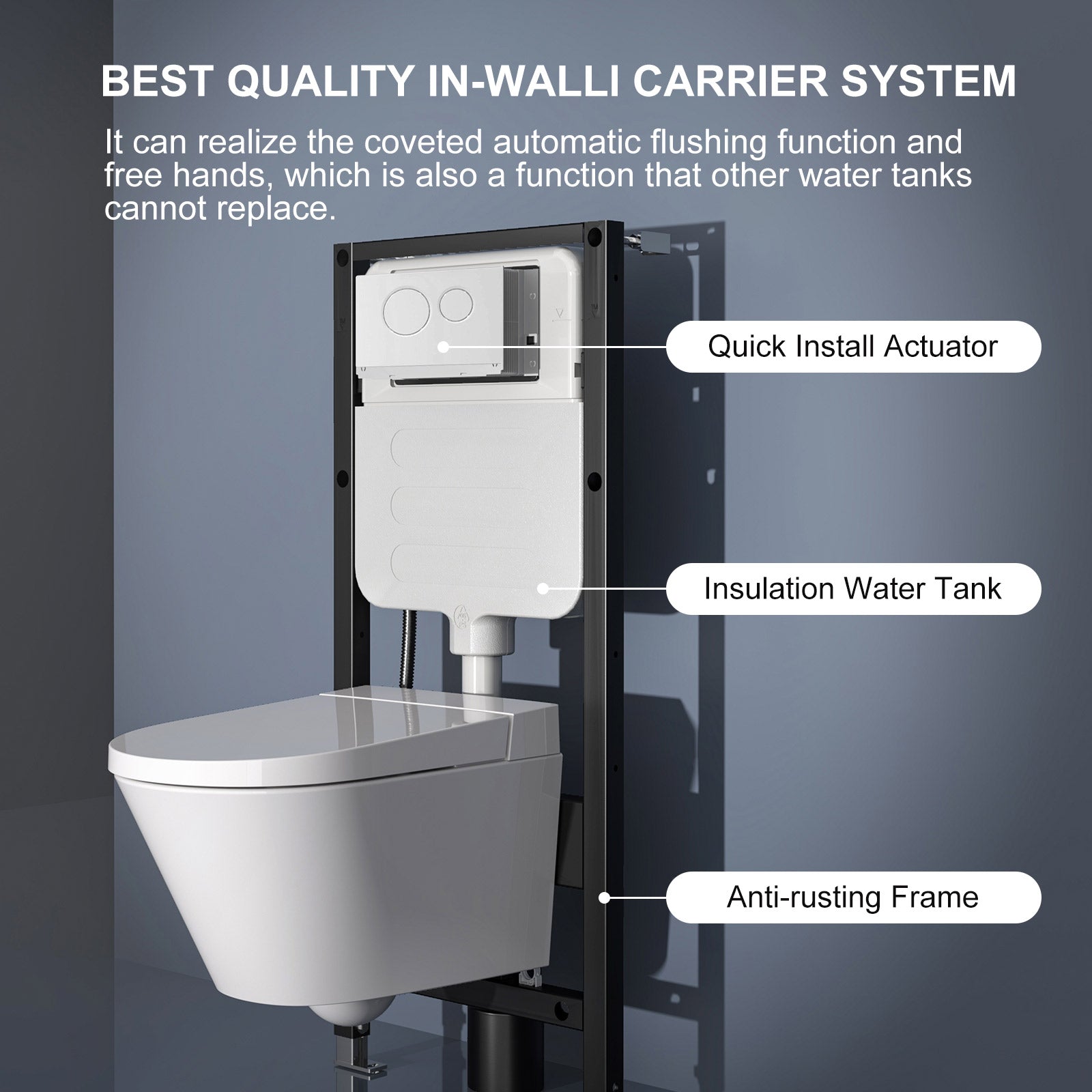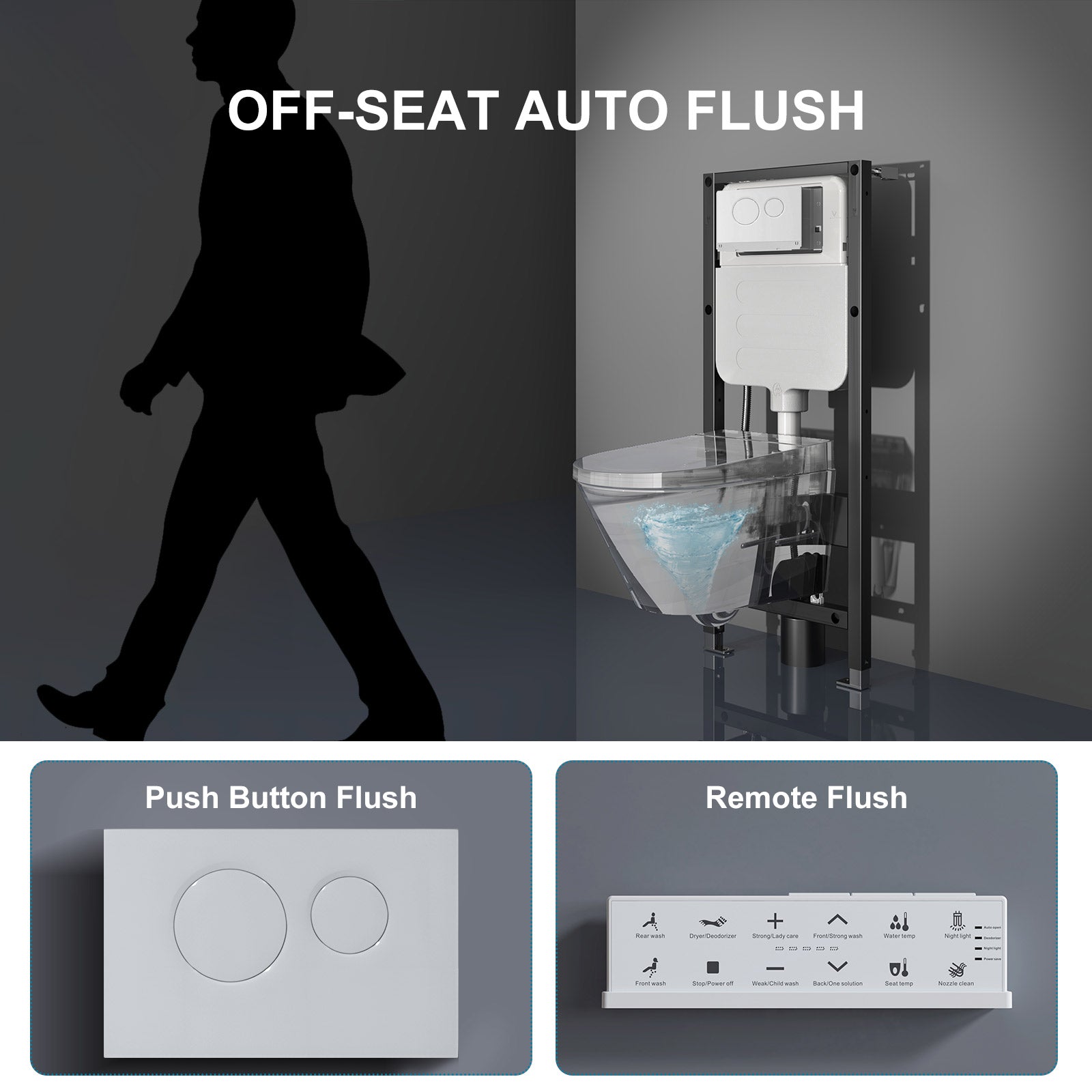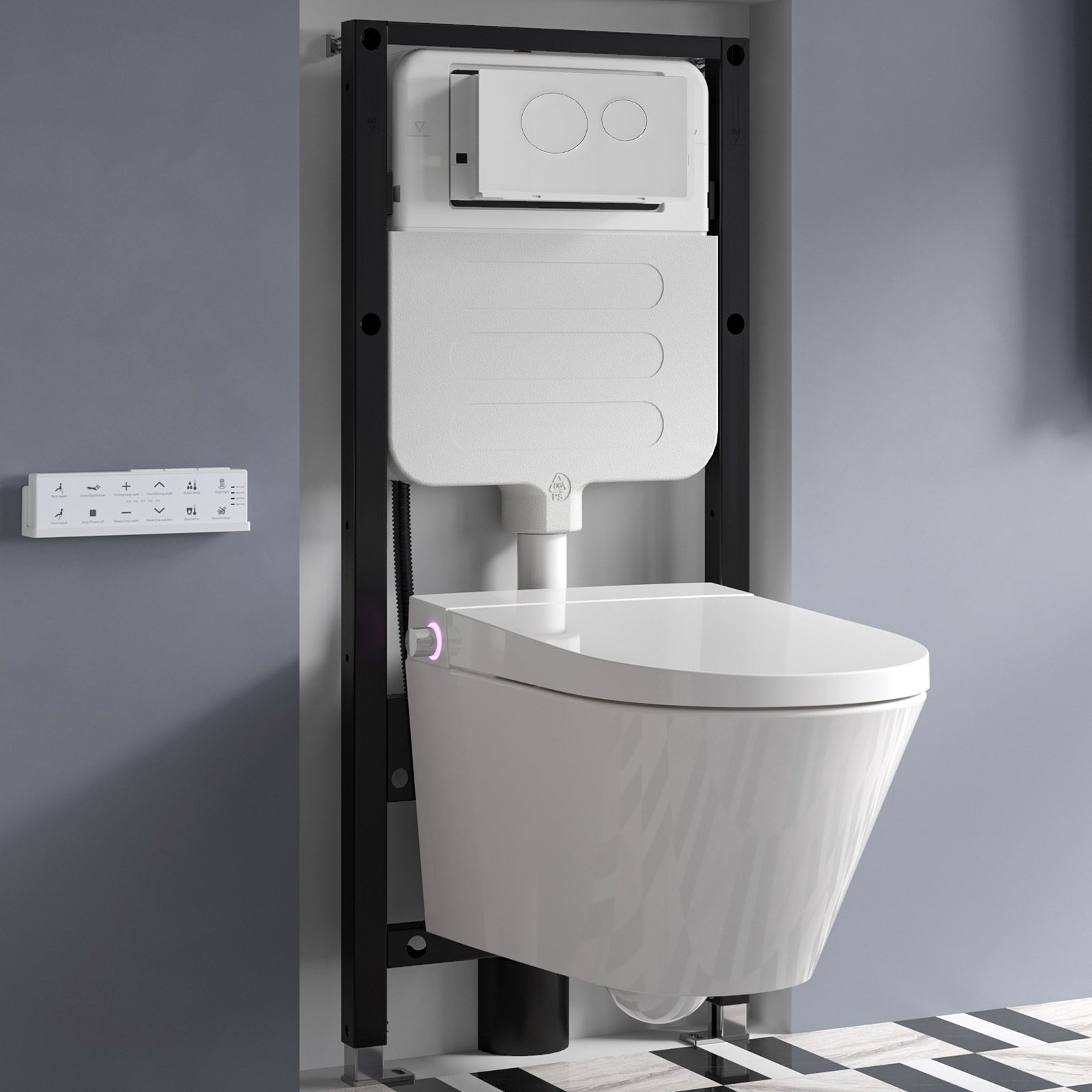 HOROW G10-WT is dual flush actuator with steel tube frame specially designed for G10 wall mounted smart toilet and TG02W wall hung toilet. 1.28GPF dual flush and adjustable bowl height options are available.
