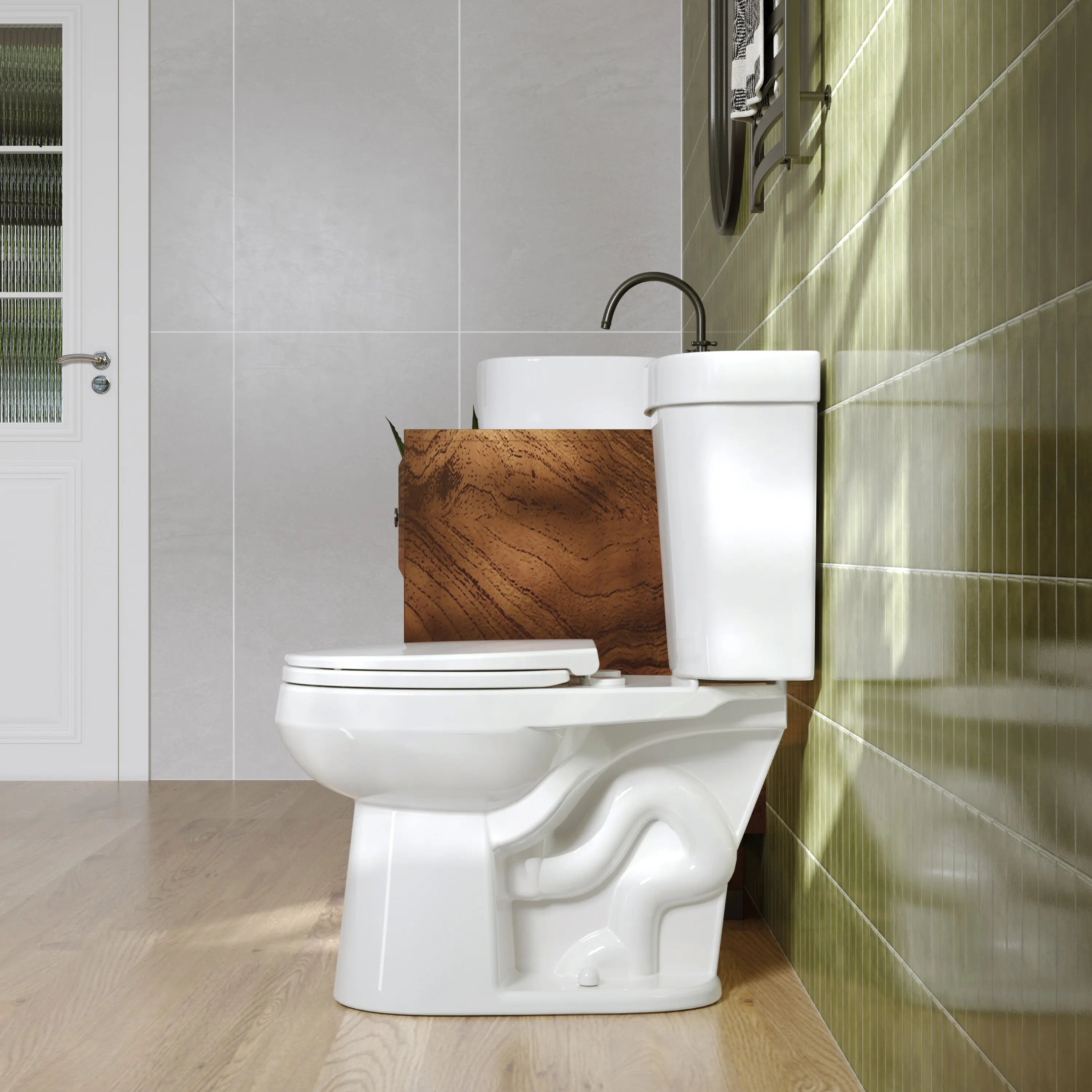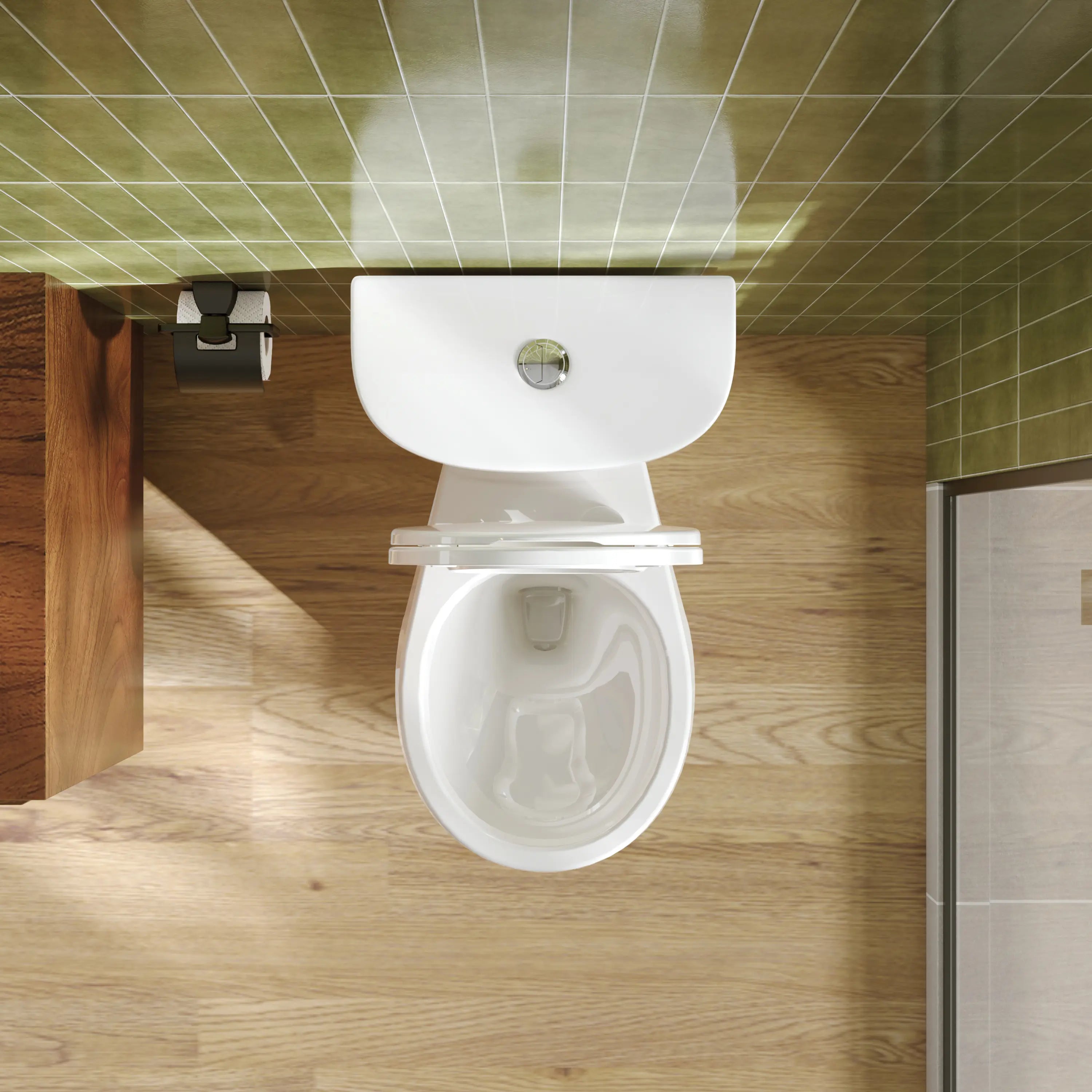 The HWTT-R01D toilet is a 2 piece toilet with dual flush. Round front bowls provide the best solution for small bathrooms or powder rooms. The ADA toilet height is 17.5 inches, providing the most comfortable standing and sitting positions. All-round jet siphon flushing technology can completely flush most solids and liquids.
