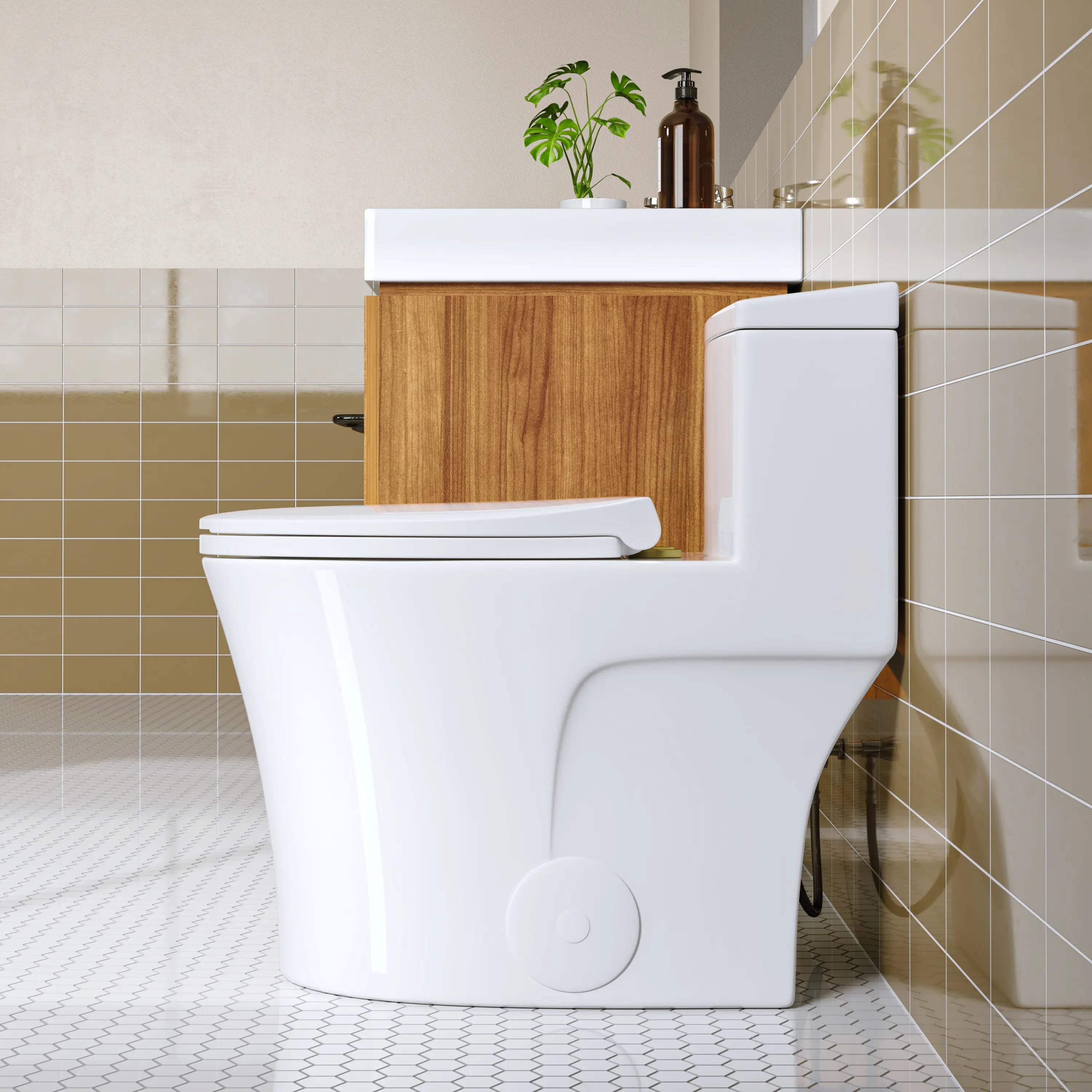 Siphon Flushing with dual flush options (0.8/1.28 GPF) for significant water savings without compromising efficiency.