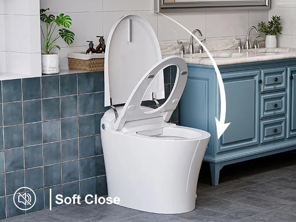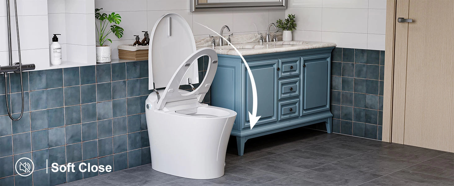 - The soft-close antibacterial seat eliminates slamming noise, prevents finger pinching, and maintains a quiet, hygienic environment.