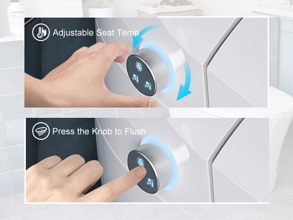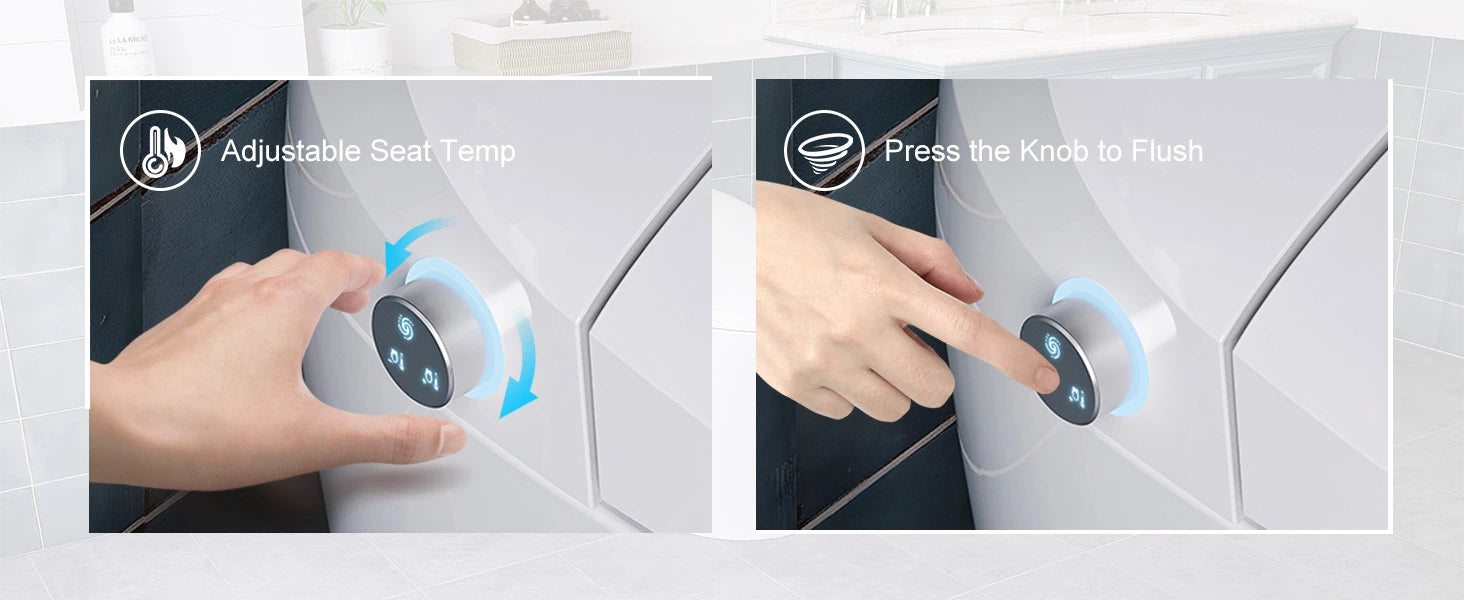 Adjust your seat temperature with a simple twist, then press the same knob to flush. A sleek, user-friendly design that brings precision, comfort, and smart control right at your fingertips.