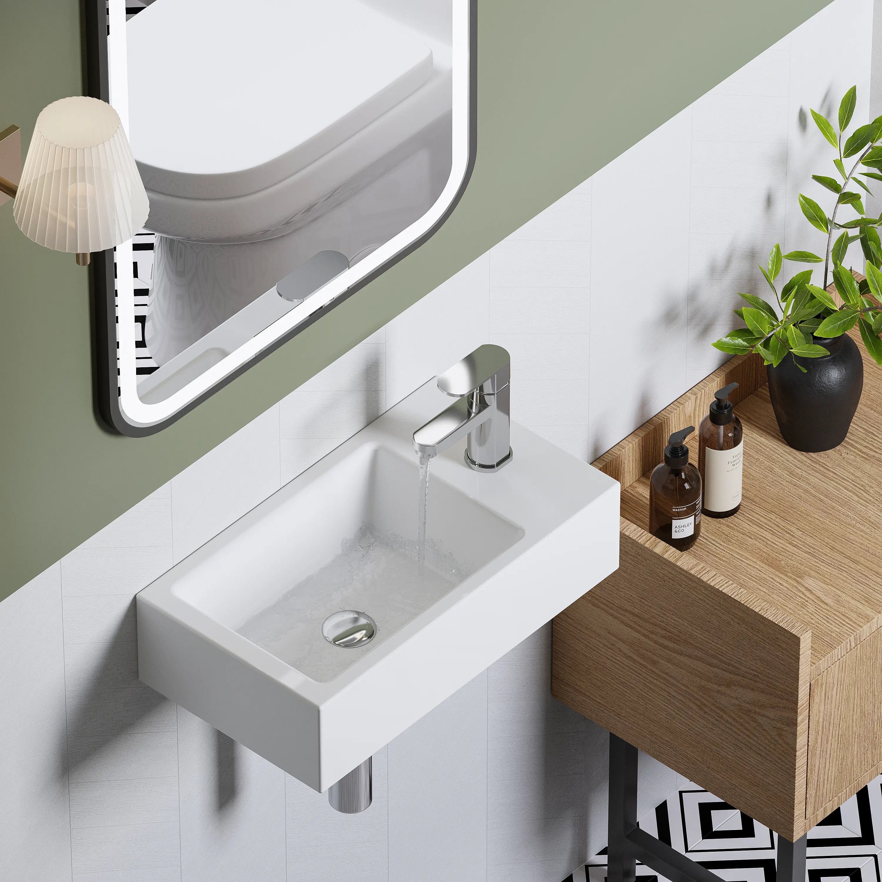 Perfect for small bathrooms, this sink is a space saver, offering functionality without compromising on style.