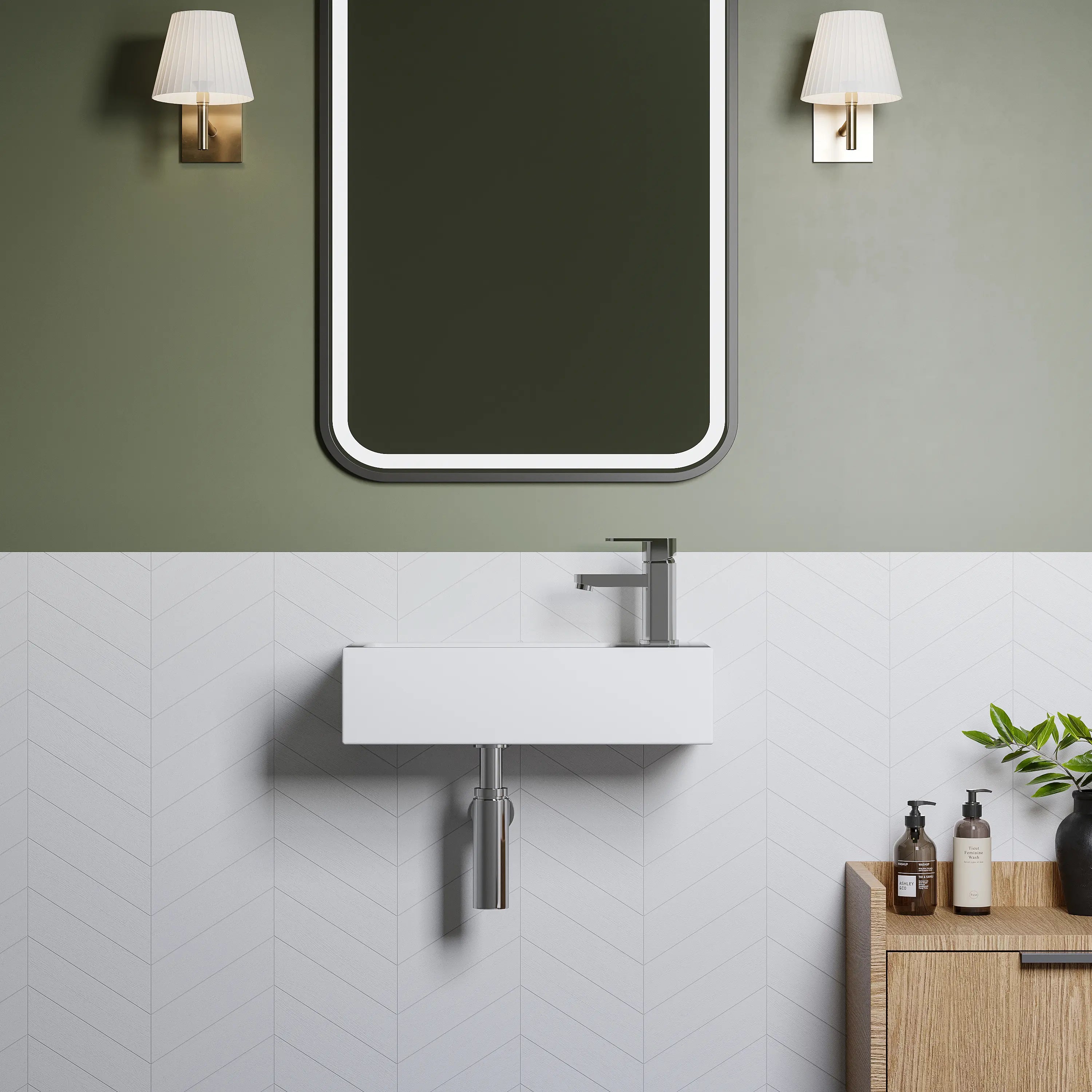 A practical wall mounted sink not only beautifies the bathroom, but also saves space. The HOROW HWTP-0001 sink is a right hand sink with dimensions of 12.2 inches long x 7.5 inches wide x 3.5 inches deep and can be used for daily washing or hand washing. The ceramic surface uses a multi-layer glazing process to ensure surface durability and water resistance. Accepts faucets with 1.37 inch faucet holes and fits 1.75 inch drain holes.