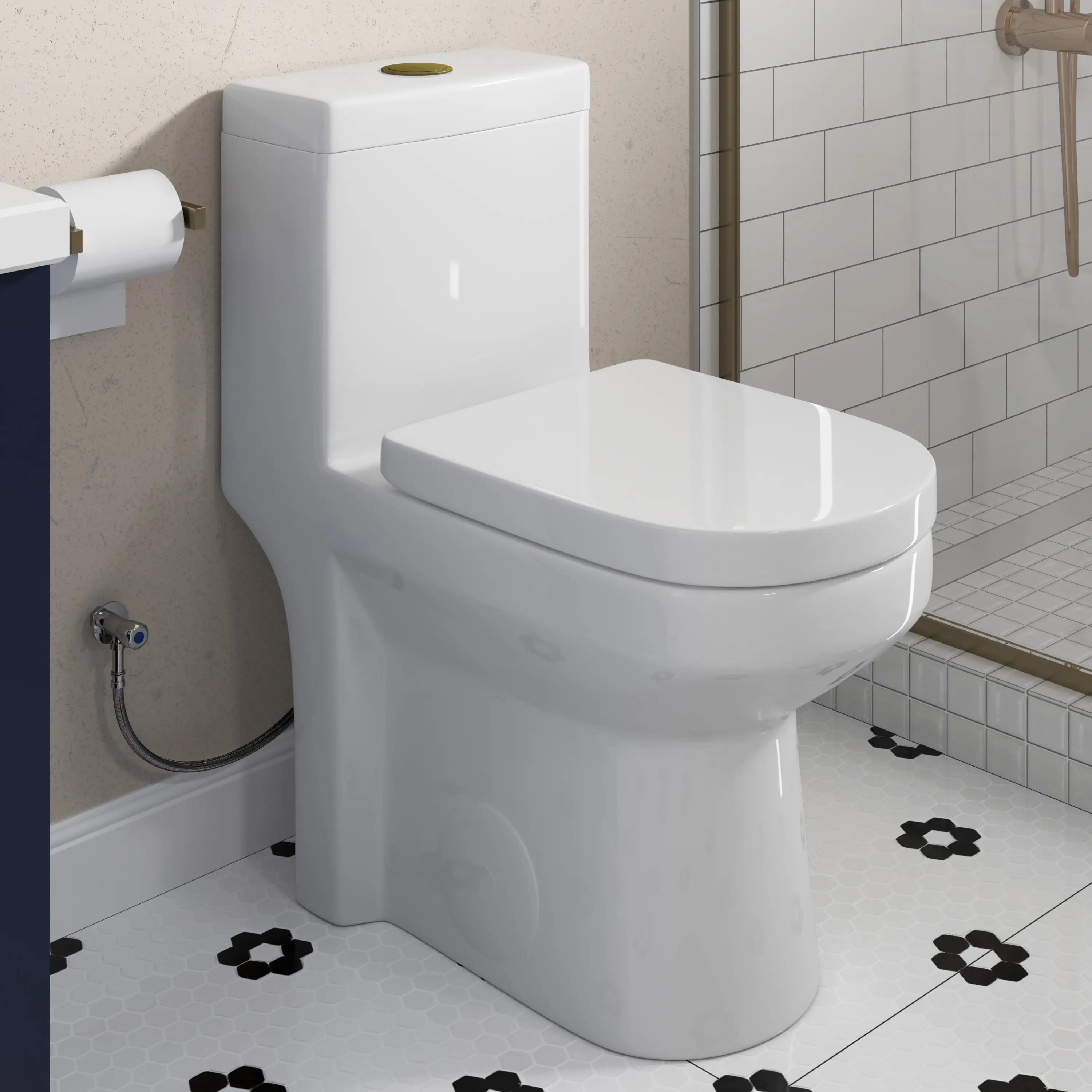 HOROW Small Compact Toilet With Gold Button For Bathroom Model 8733G