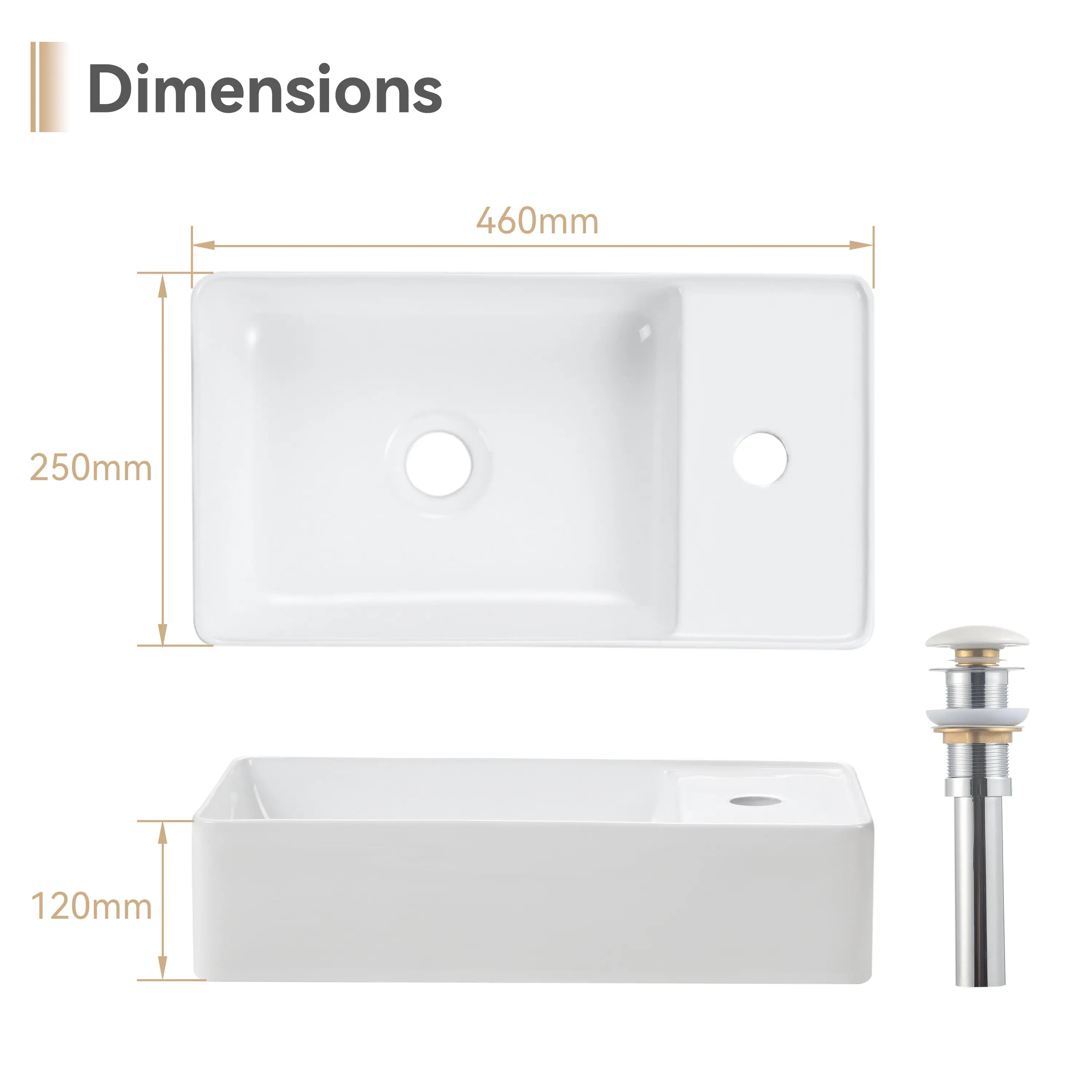 The HOROW HWTP-S4625WR sink is a rectangular bathroom sink. The 10-inch width design can save more washing space. Comes with pop-up drain and installation kit to reduce extra expenses.
