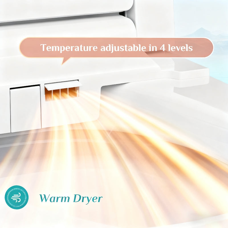 Four-speed warm air adjustable drying function, paperless into the toilet allows you to enjoy the comfort while taking into account the environment.
