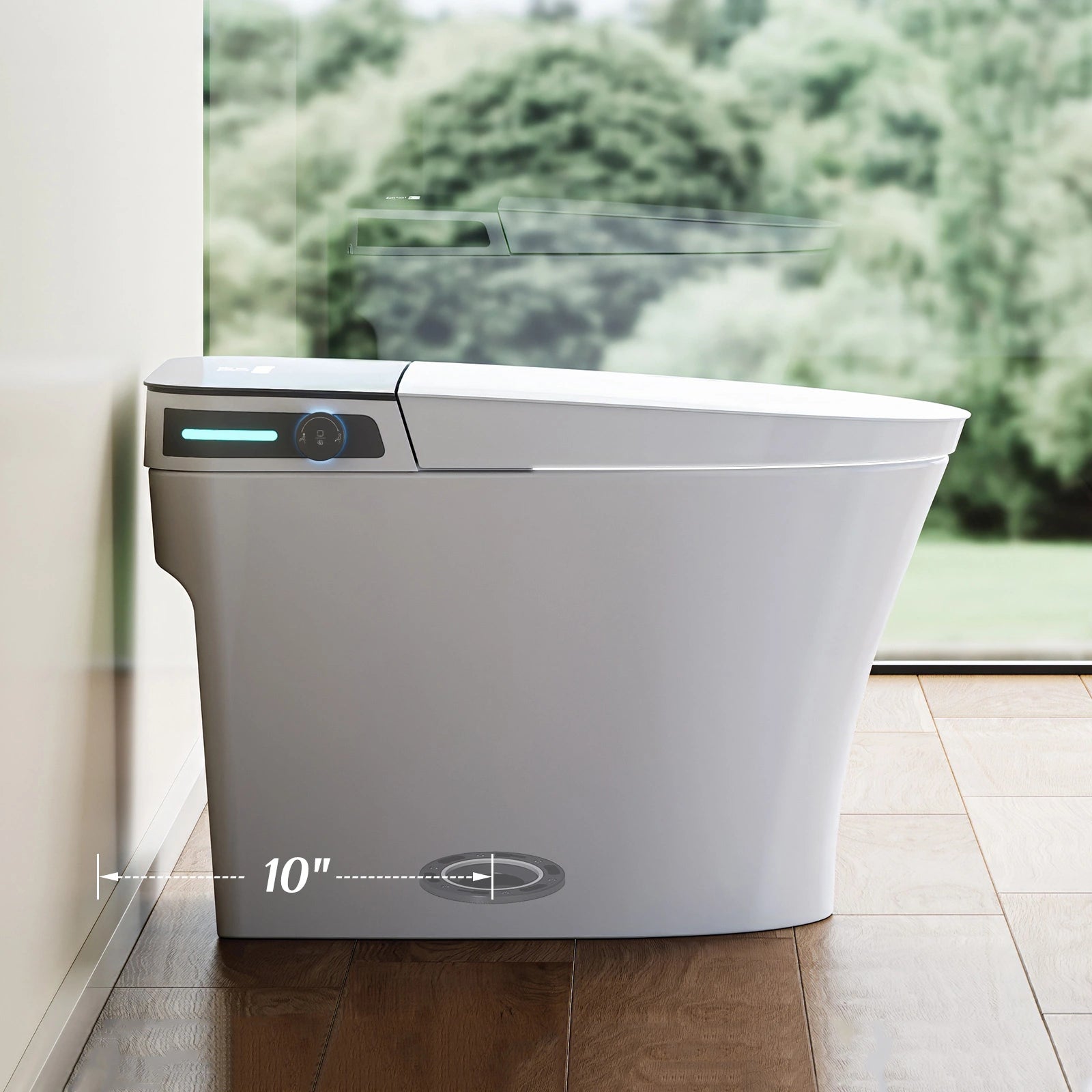 A smart toilet with 10 inch rough in refers to a type of toilet fixture that has specific dimensions for installation. The "10 inch rough in" measurement typically refers to the distance between the center of the toilet's waste drain and the wall behind it. This measurement is important for ensuring that the toilet fits properly in the space provided.
