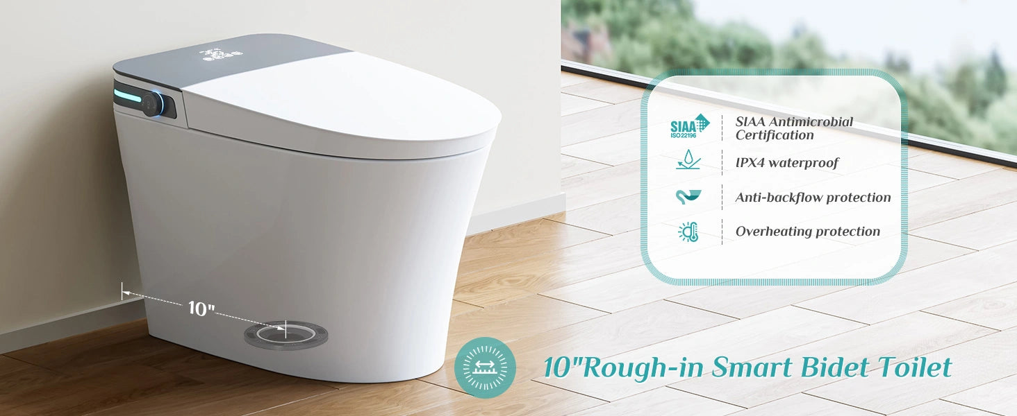 SIAA antimicrobial certified, IPX4 waterproof, with anti-backflow and overheating protection. Designed for 10" rough-in installation, ensuring a safe, durable, and hygienic bathroom experience.