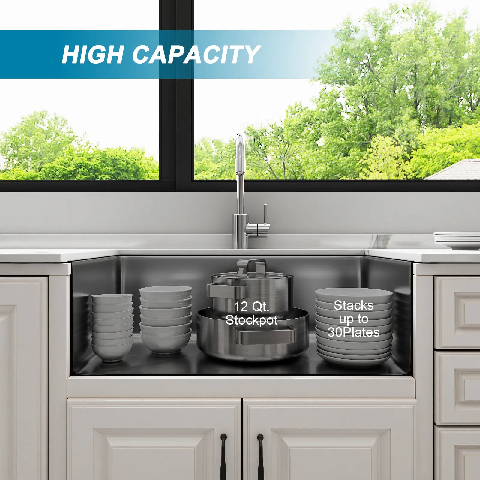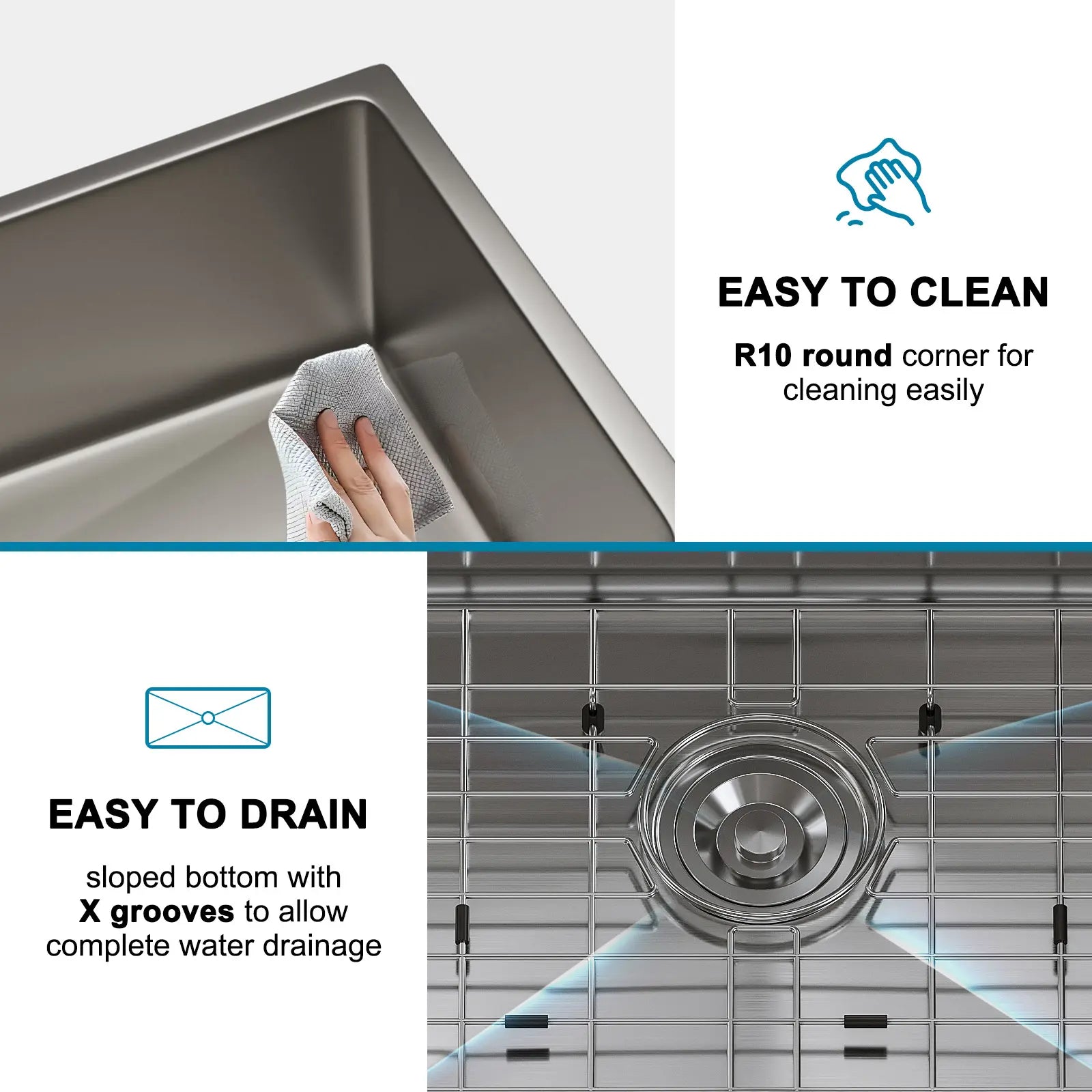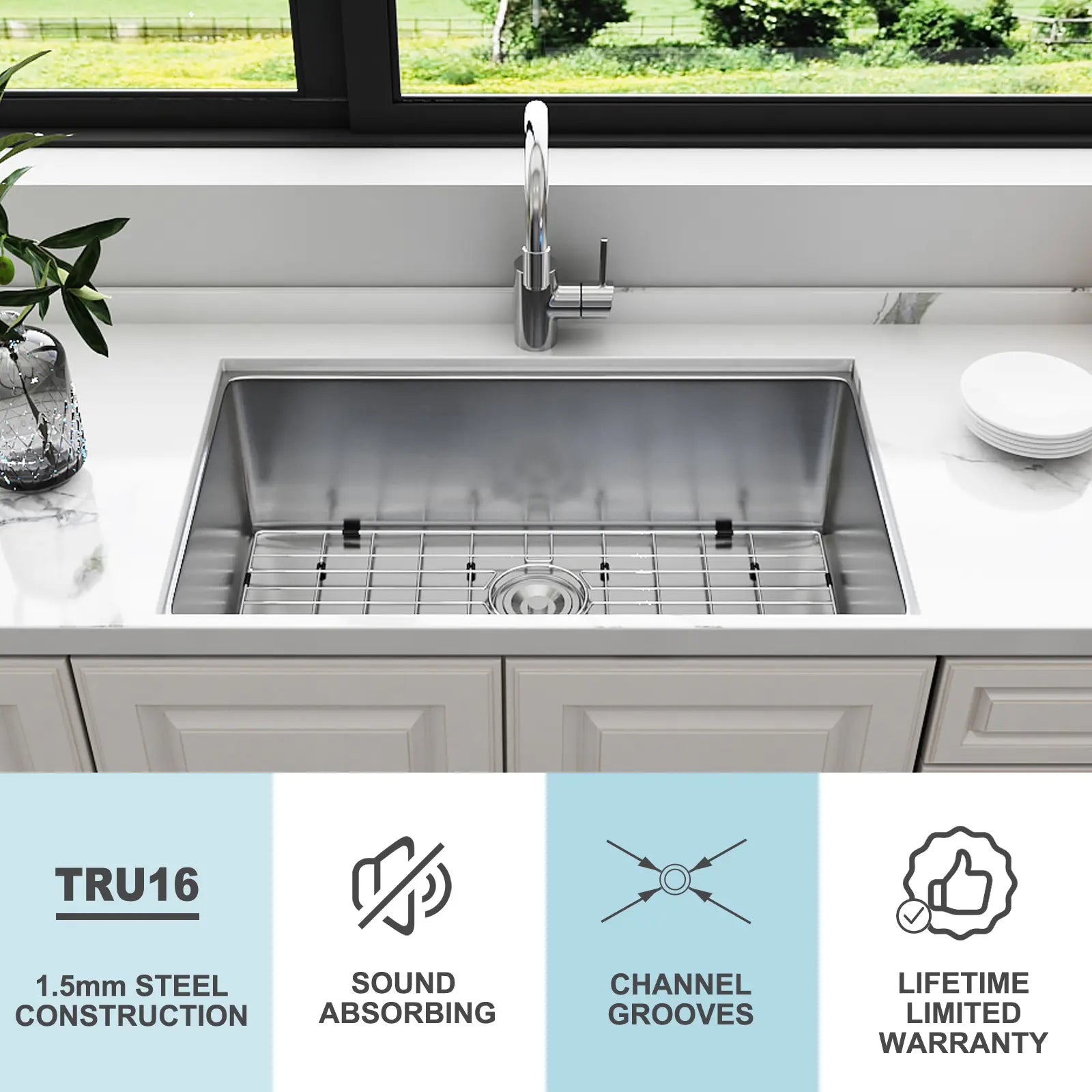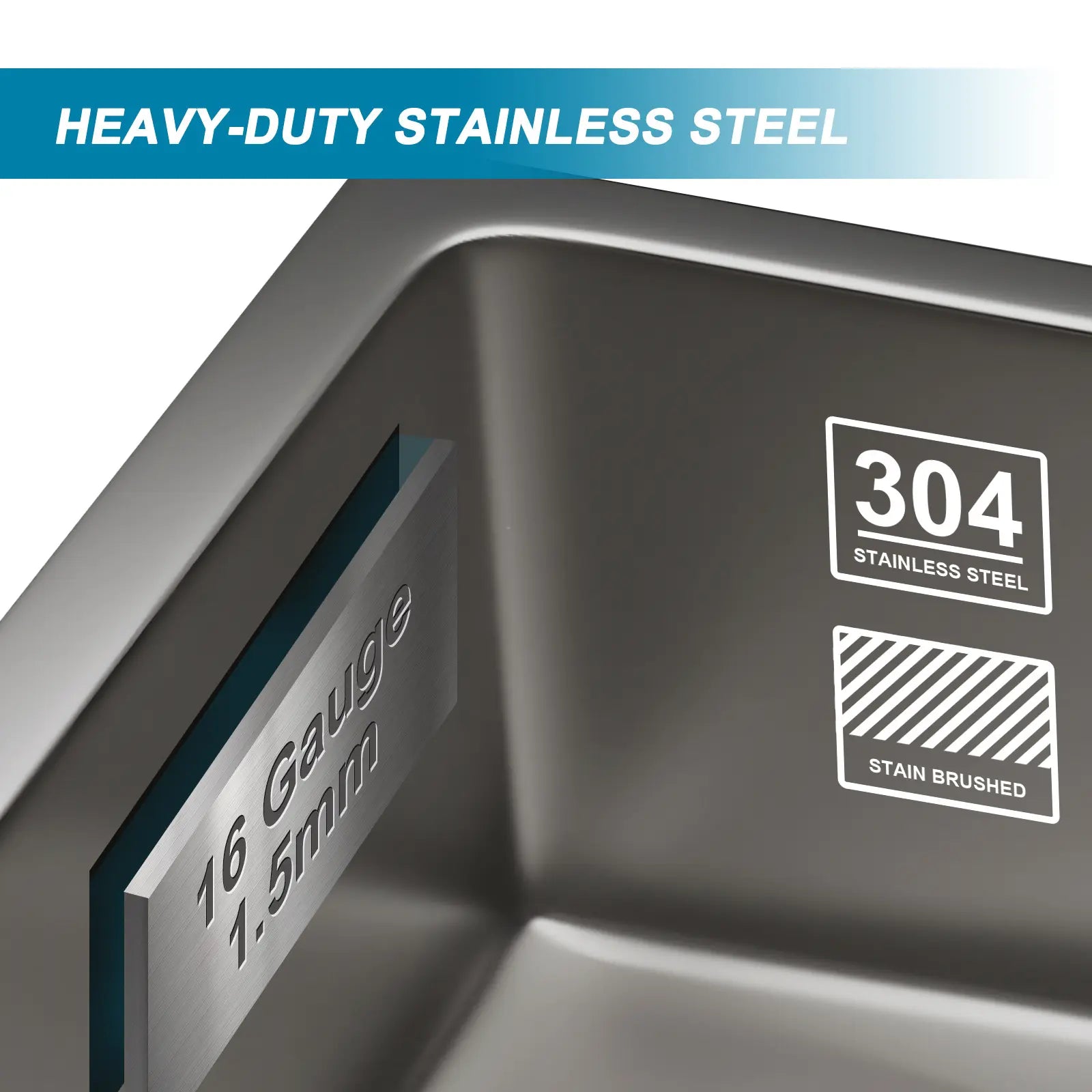 Crafted from unbreakable 16-gauge premium T-304 grade stainless steel (18/10 Chromium/Nickel), this sink is 37% thicker than standard kitchen sinks, ensuring unmatched longevity and durability in your kitchen.