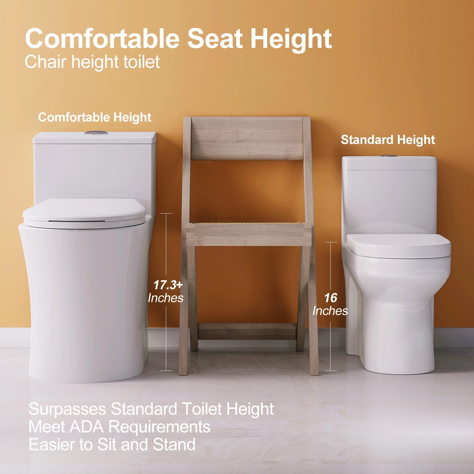 HOROW T0338W Elongated One Piece Toilet ADA Toilet Height 17.3 Inch