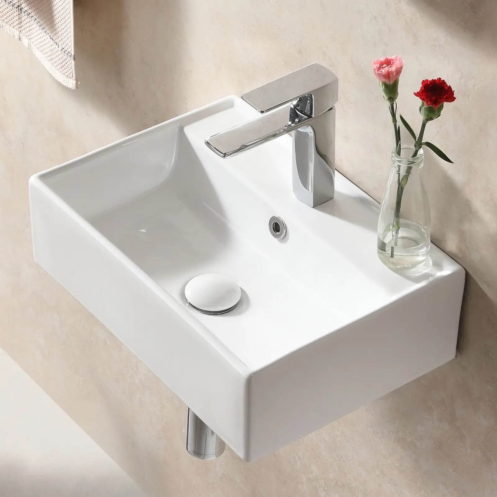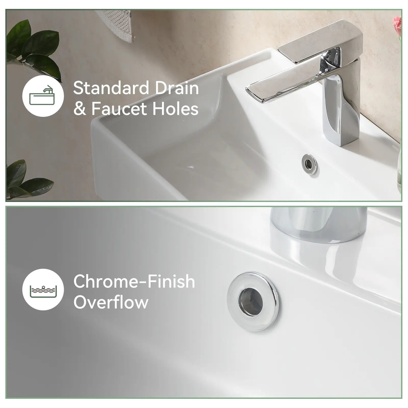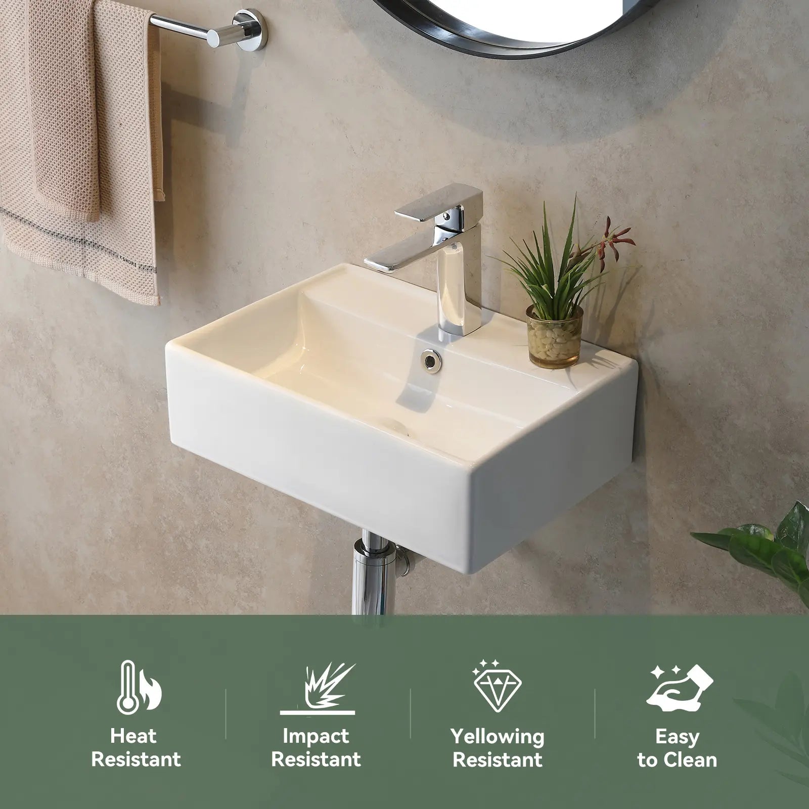 This wall mounted bathroom sink is also a small wall mount sink. Stain-resistant ceramic craftsmanship enhances convenience for daily use, and can be connected to a 1.75-inch drain outlet and overflow drain to prevent water overflow.