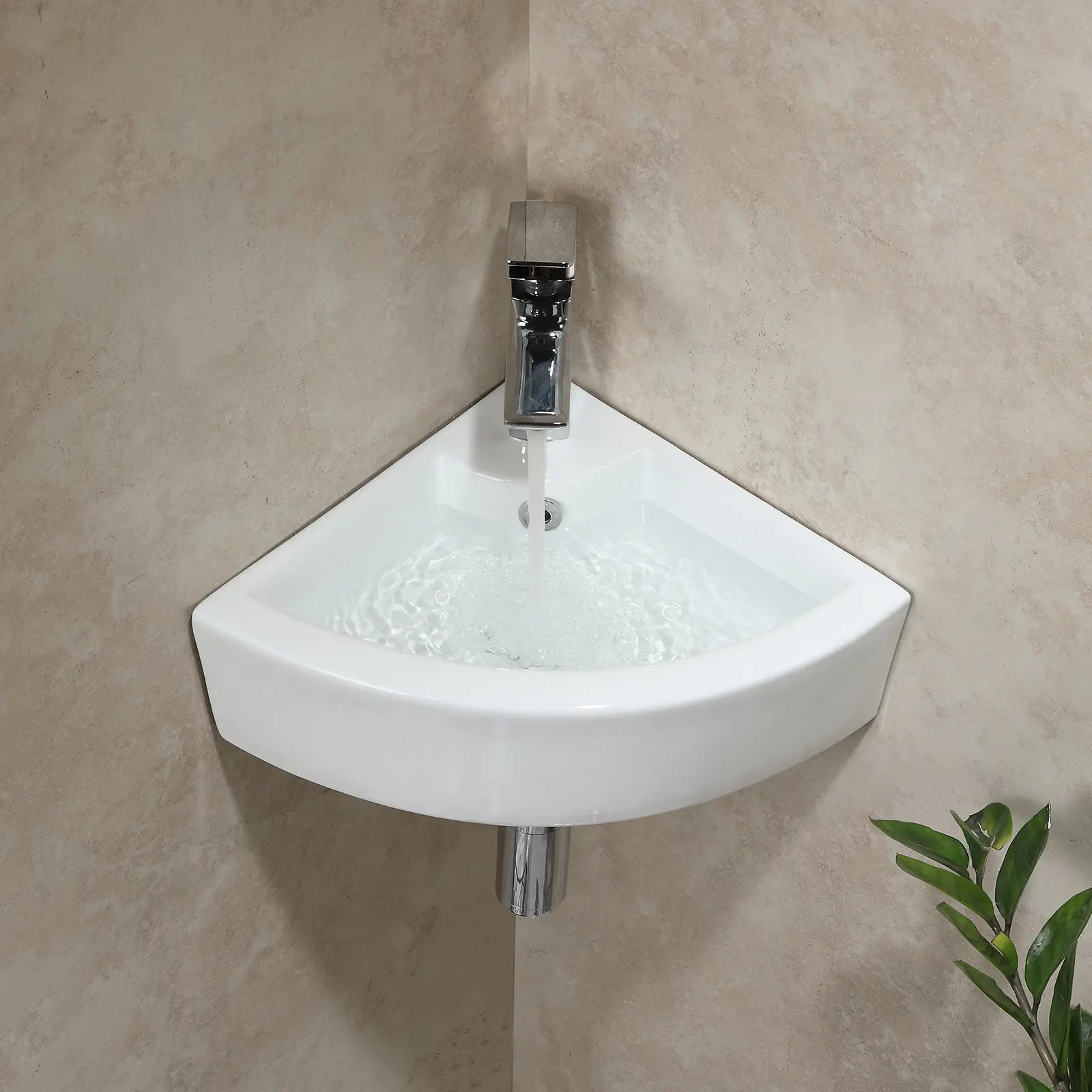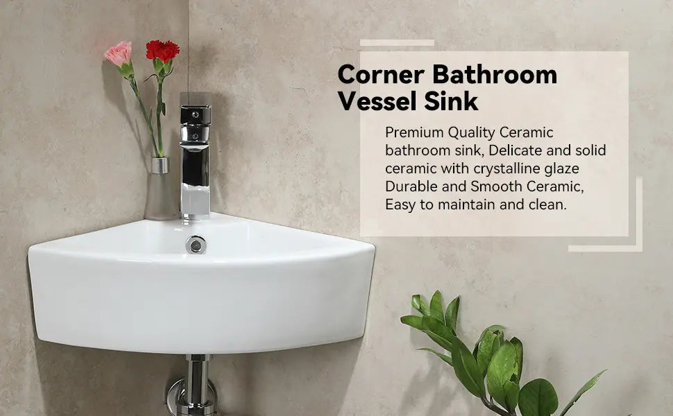 Timeless and modern, this wall-mounted corner sink combines style and functionality, making it an ideal choice for maximizing space in crowded bathrooms.