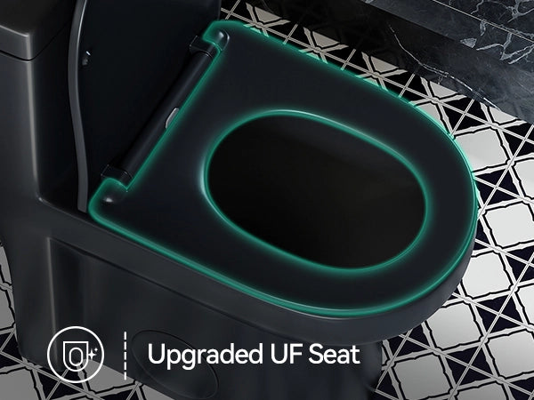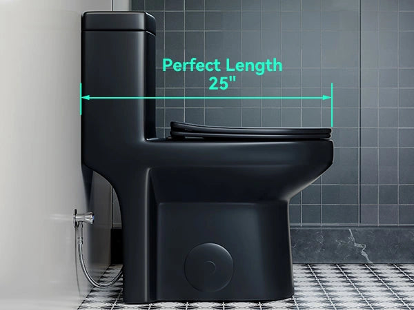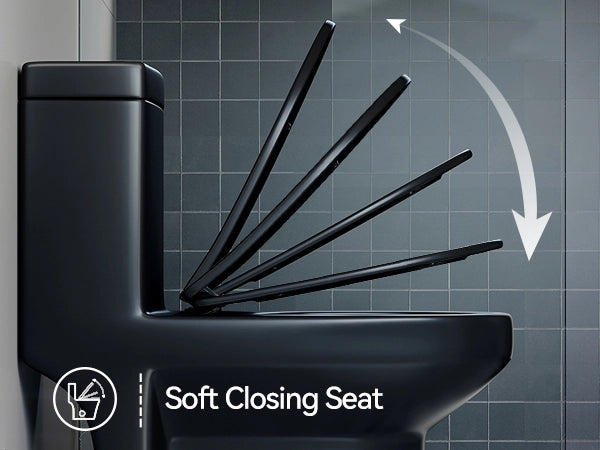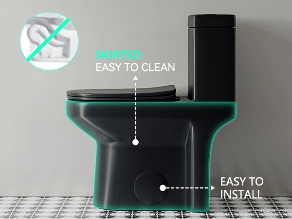 The HOROW HWMT-8733BU Matte Black Toilet features a sleek skirted design and soft-close UF seat, adding bold style to any bathroom. Designed for a 12-inch rough-in, it offers modern aesthetics, easy cleaning, and quiet, comfortable use.