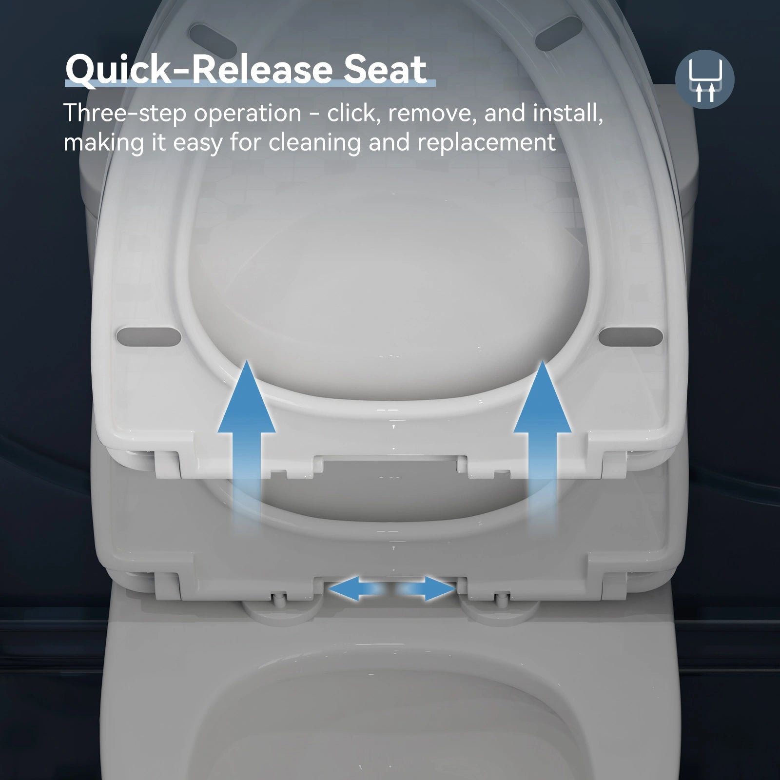 The soft-close seat closes gently and quietly, minimizing noise and preventing slamming for a more peaceful bathroom experience.