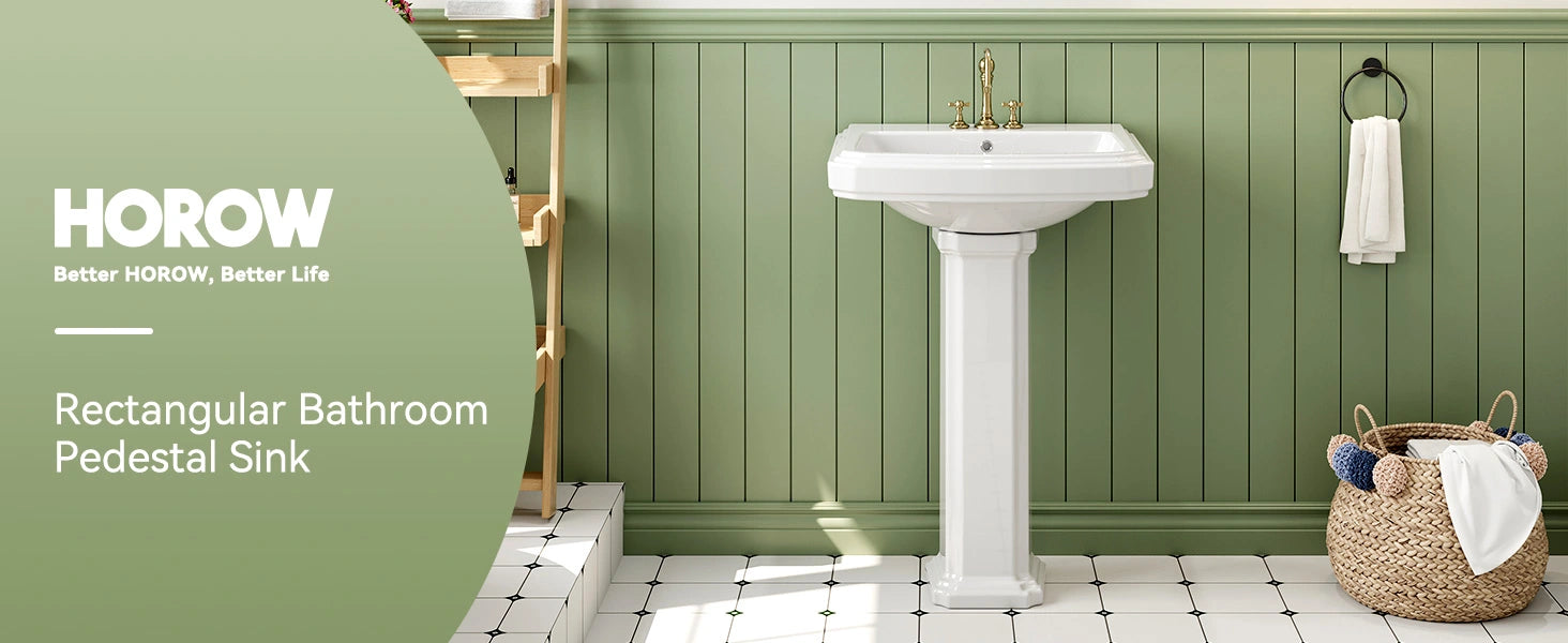The HOROW CBS-S03 rectangular pedestal sink combines sleek design with functionality. Featuring three pre-drilled holes for versatile faucet installation and built-in extra storage, it’s perfect for modern bathrooms seeking style, practicality, and optimized space utilization. Durable and elegant.